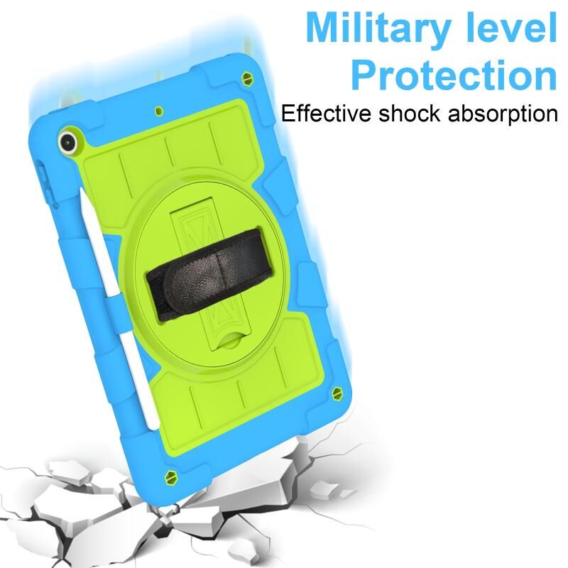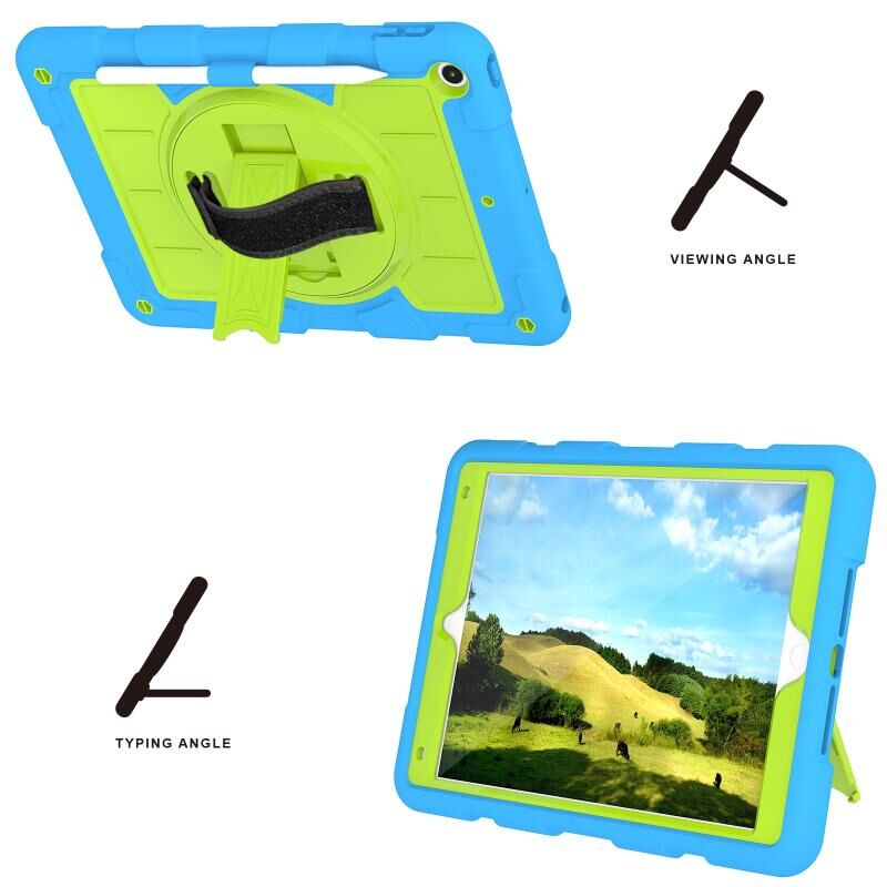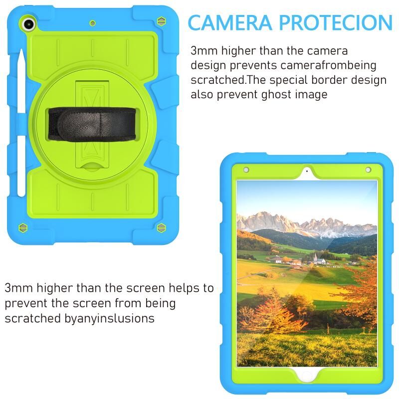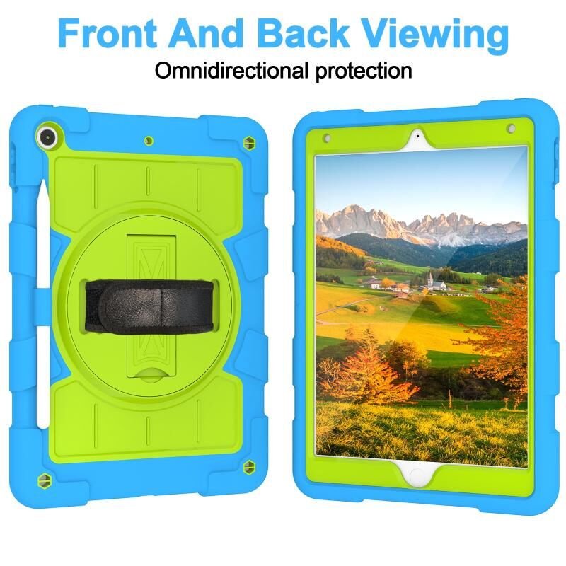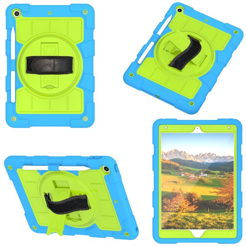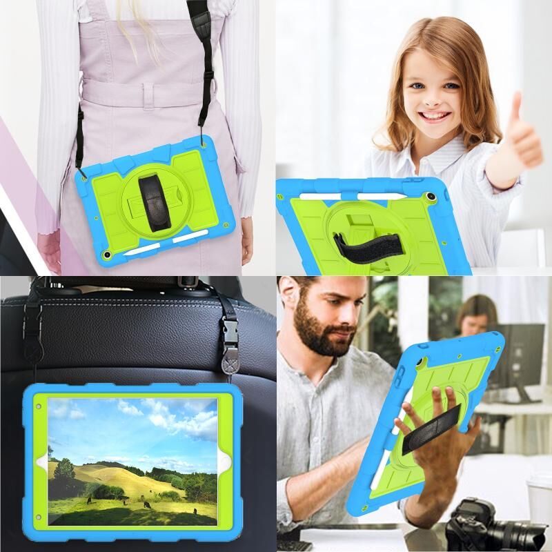 For iPad 10.2 2021 / 2020 / 2019 Silicone Hybrid PC Shockproof Tablet Case with Shoulder Strap(Bluish-Green)