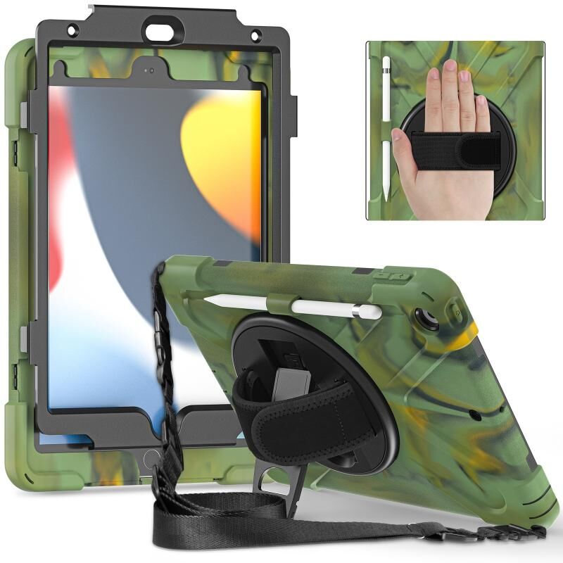 Θήκη προστασίας σιλικόνης + PC για iPad 10.2 2021 / 2020 / 2019 με βάση στήριξης & λουρί ώμου (Καμουφλάζ)