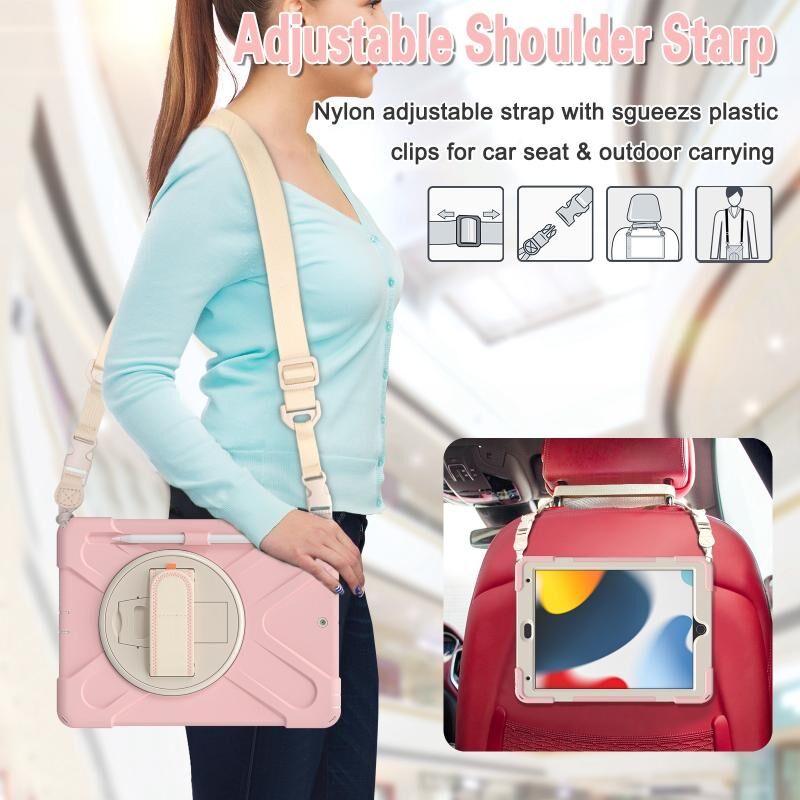 Θήκη προστασίας σιλικόνης + PC για iPad 10.2 2021 / 2020 / 2019 με βάση στήριξης & λουρί ώμου (Μαύρο)