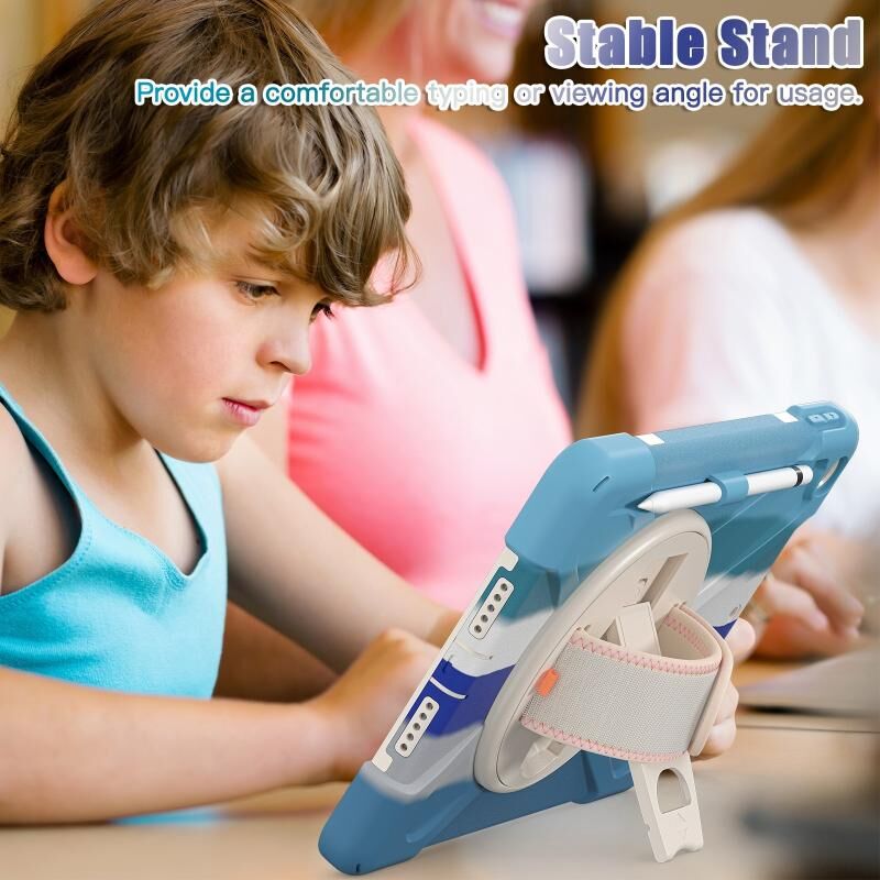 Θήκη προστασίας σιλικόνης + PC για iPad 10.2 2021 / 2020 / 2019 με βάση στήριξης & λουρί ώμου (Μαύρο)