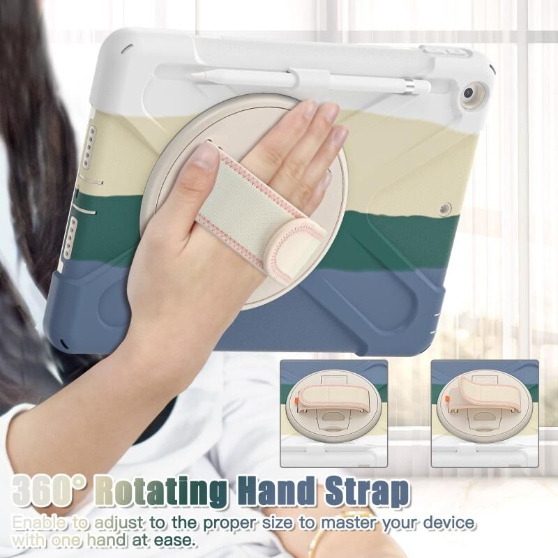 Θήκη προστασίας σιλικόνης + PC για iPad 10.2 2021 / 2020 / 2019 με βάση στήριξης & λουρί ώμου (Μαύρο)