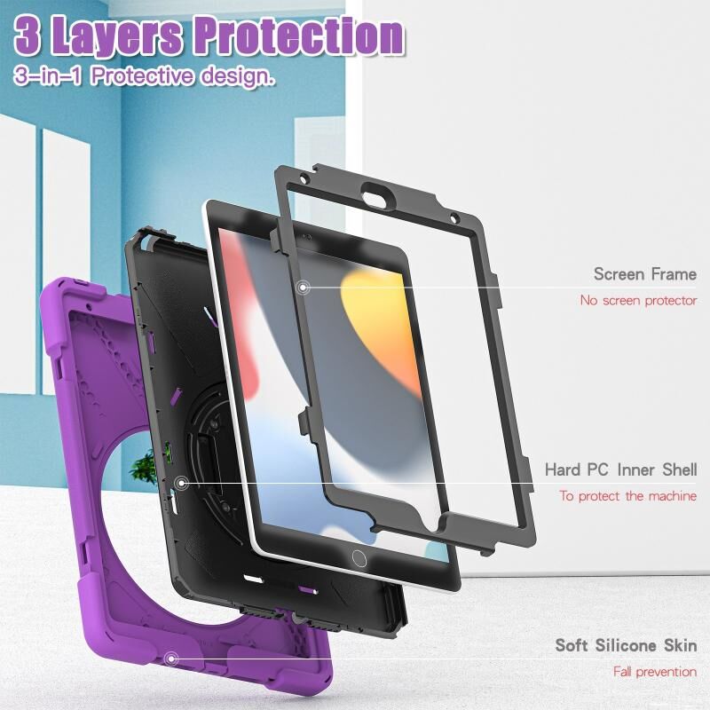 For iPad 10.2 2021 / 2020 / 2019 Silicone + PC Protective Case with Holder & Shoulder Strap(Purple)