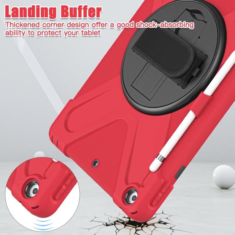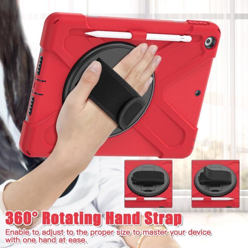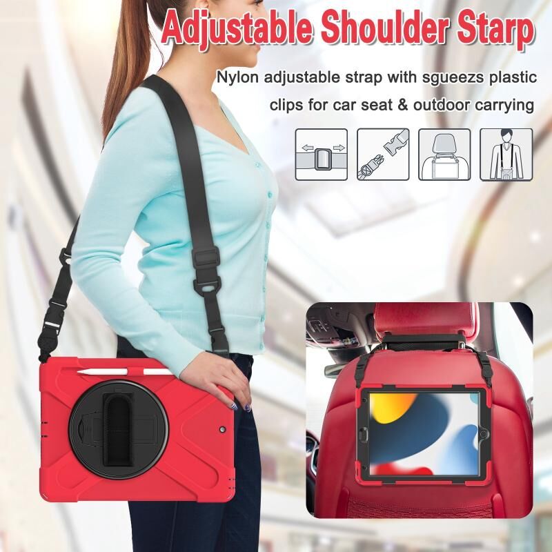 For iPad 10.2 2021 / 2020 / 2019 Silicone + PC Protective Case with Holder & Shoulder Strap(Red)