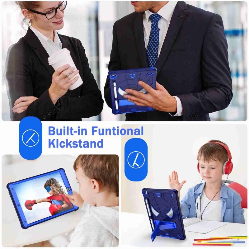 Θήκη ταμπλέτας υβριδική από σιλικόνη και PC για iPad 10.2 2021 / 2020 / 2019 με υφή αράχνης και λουρί ώμου (Μπλε + Κόκκινο)