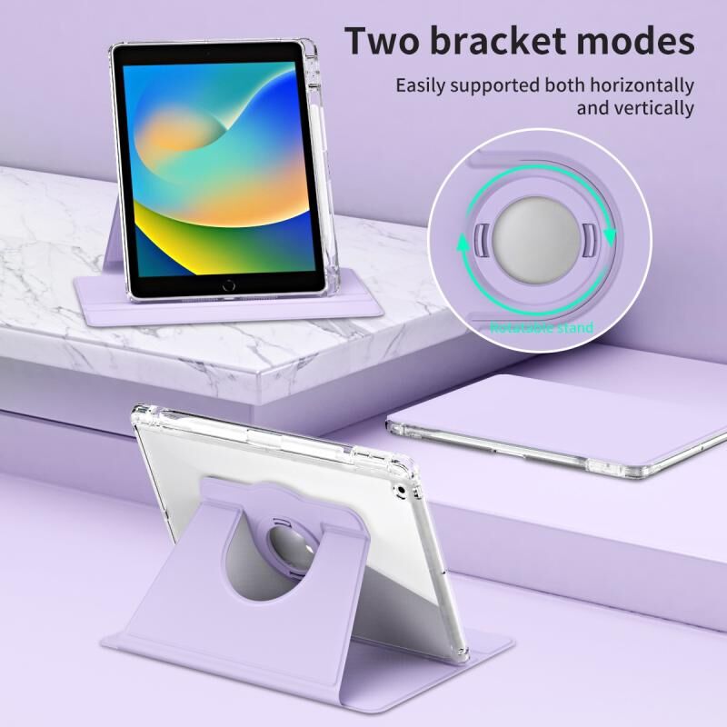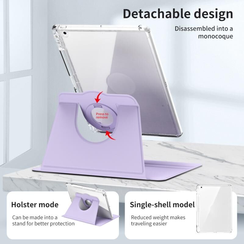 For iPad 10.2 2021 / 2020 360 Rotation Detachable Clear Acrylic Leather Tablet Case(Light Purple)
