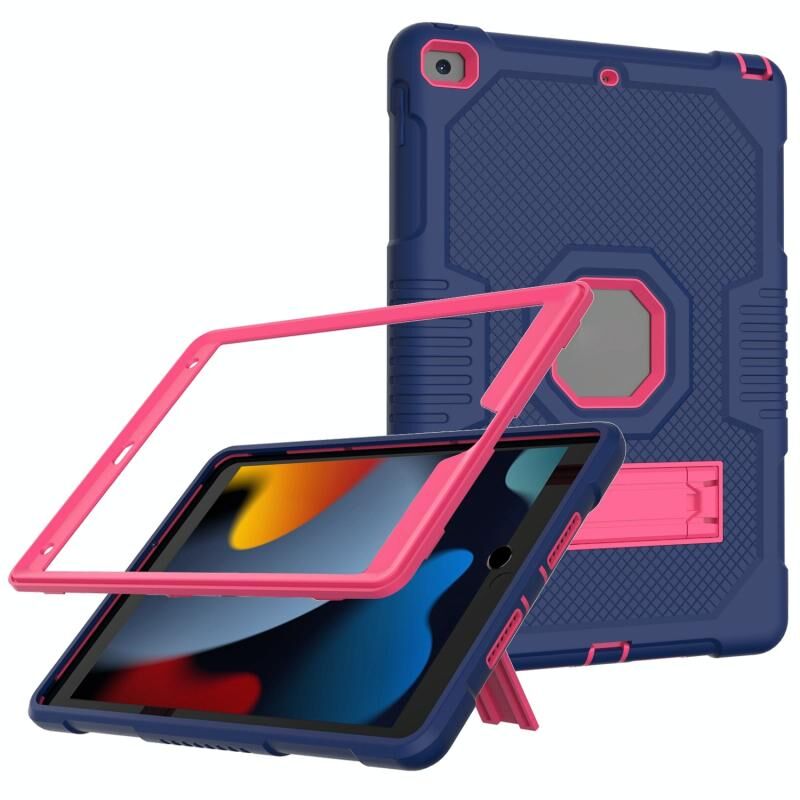 For iPad 10.2 2021 Contrast Color Robot Shockproof Silicone + PC Tablet Case(Navy Blue Rose)