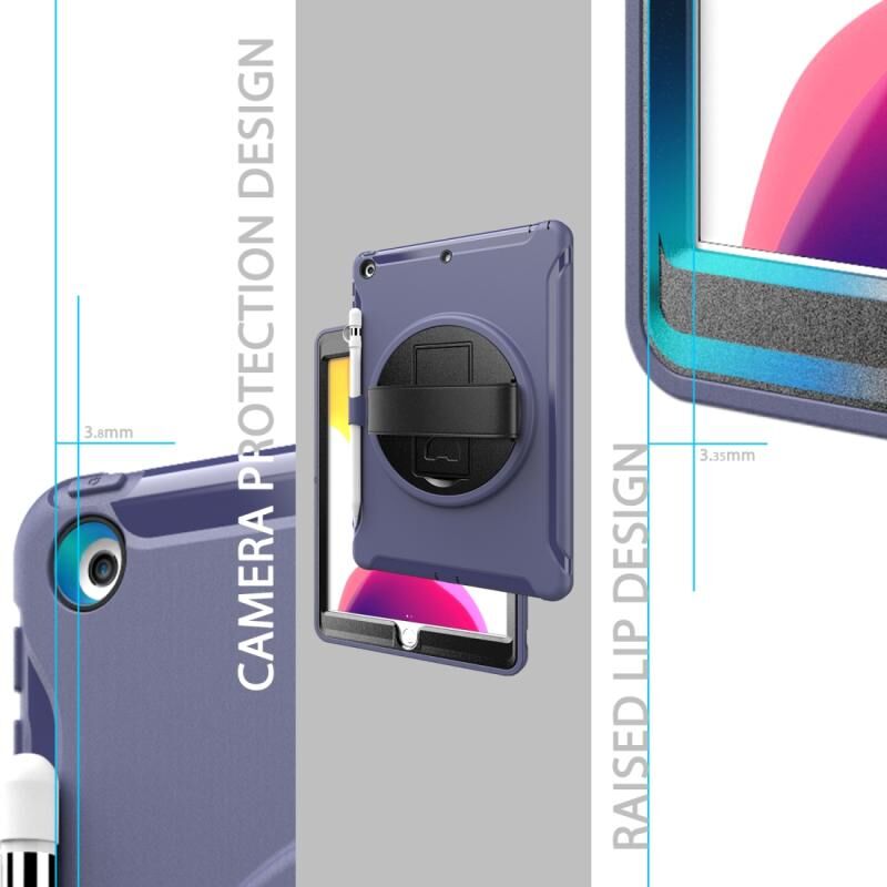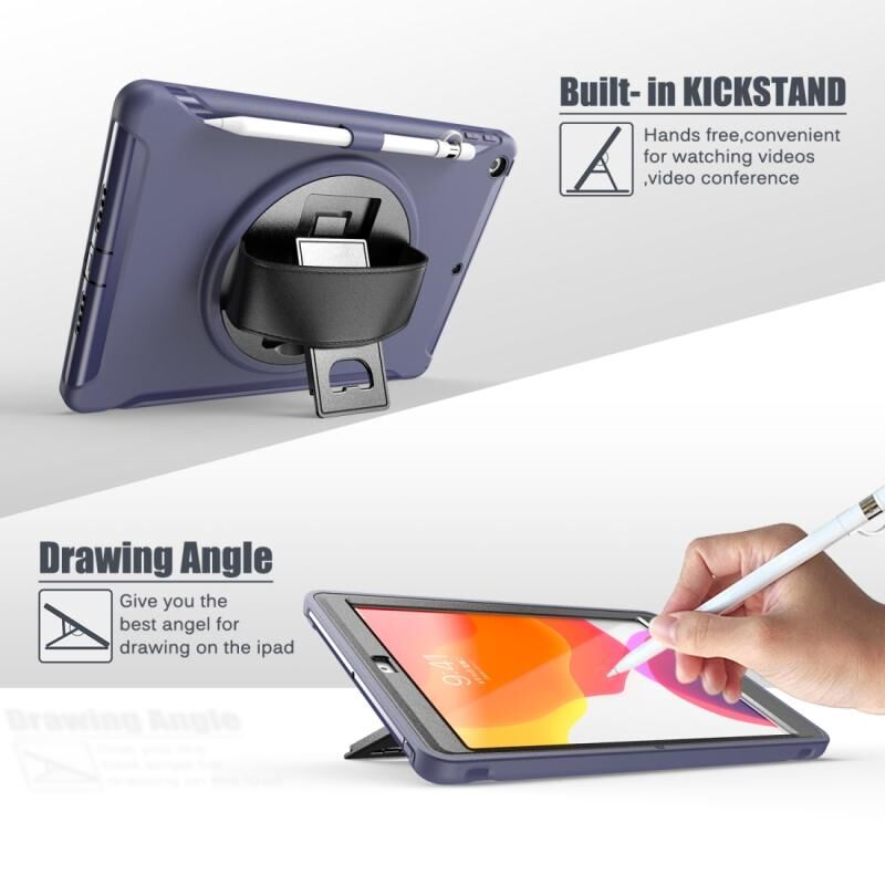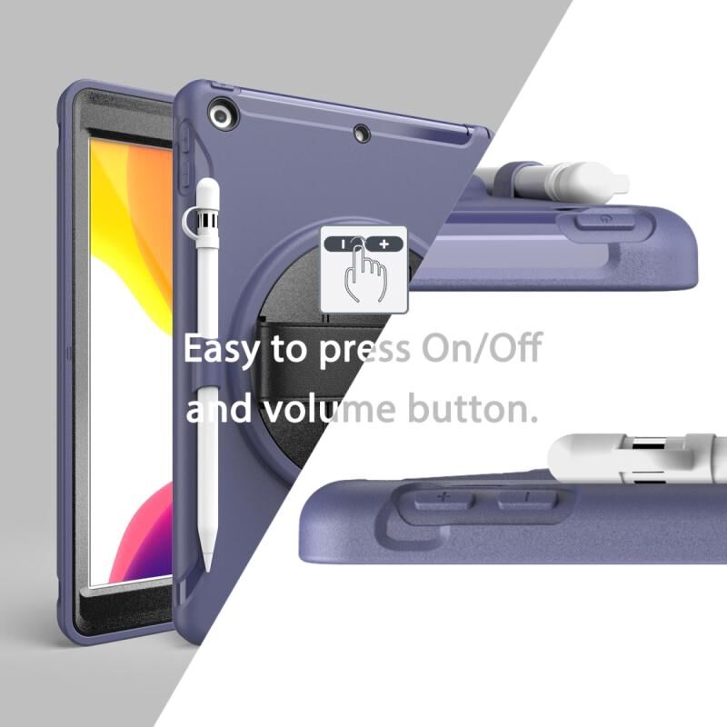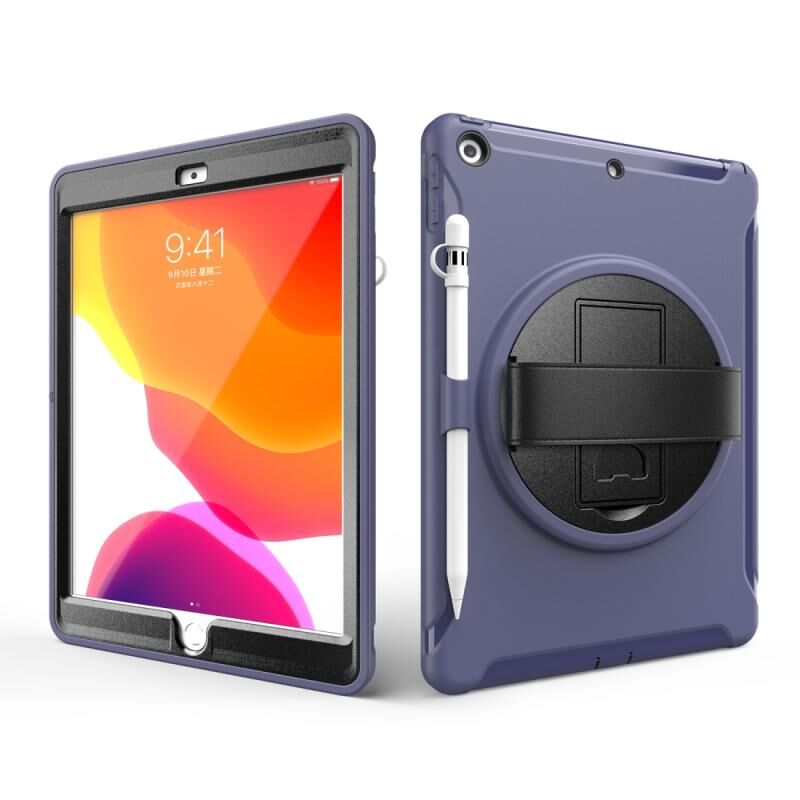 Θήκη προστασίας 360 μοιρών για iPad 10.2 από PC+TPU με βάση στήριξης, λουρί χειρός και θήκη για στυλό (Κόκκινο)
