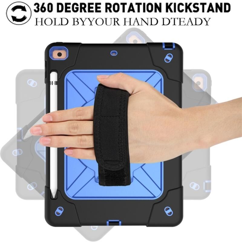 For iPad 10.2 Contrast Color Silicone + PC Combination Case with Holder(Black + Blue)