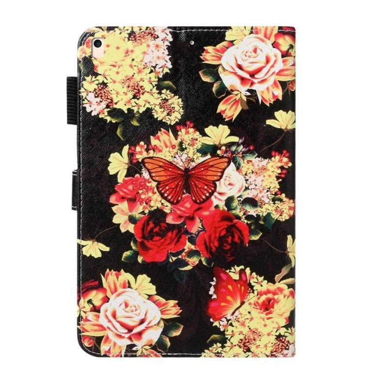 For iPad 10.2 Cross Texture Painted Horizontal Leather Case with Sleep / Wake-up Function & Card Slot & Holder & Wallet(Black Peony Flower)
