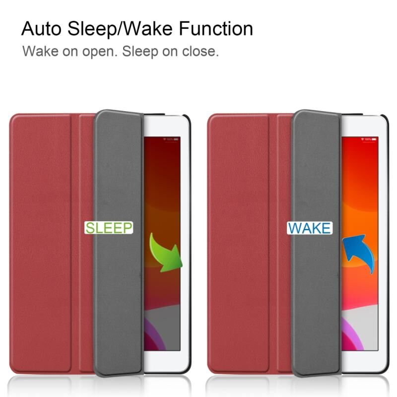 For iPad 10.2 Custer Texture Horizontal Flip Smart PU Leather Case with Sleep / Wake-up Function & Three-folding Holder (Wine Red)