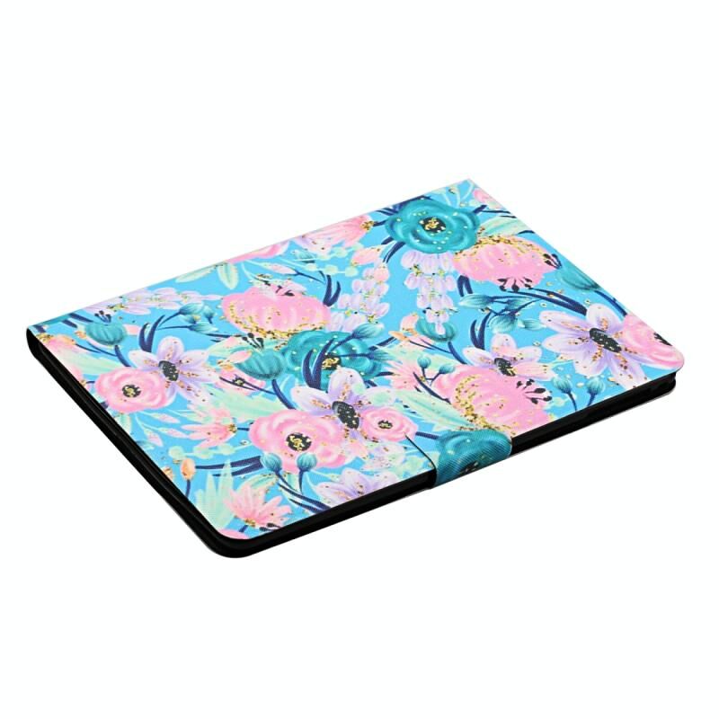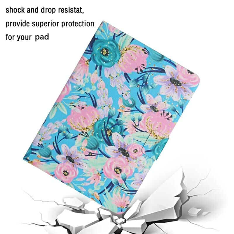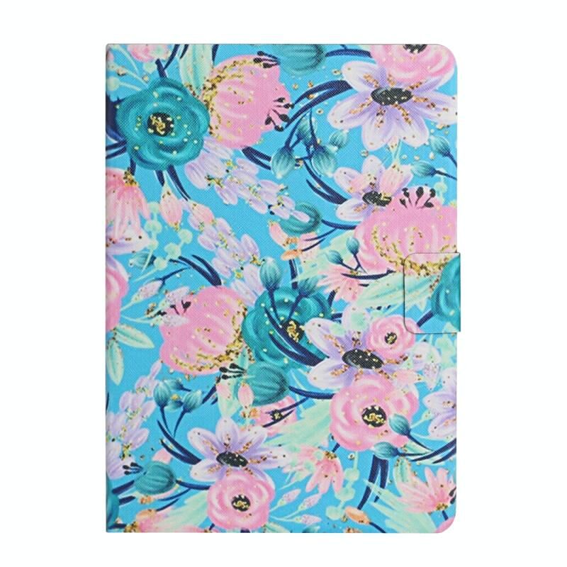 Θήκη δέρματος οριζόντιας αναδίπλωσης με σχέδιο λουλουδιών για iPad 10.2 με θήκες καρτών & βάση (Ροζ Λουλούδι)