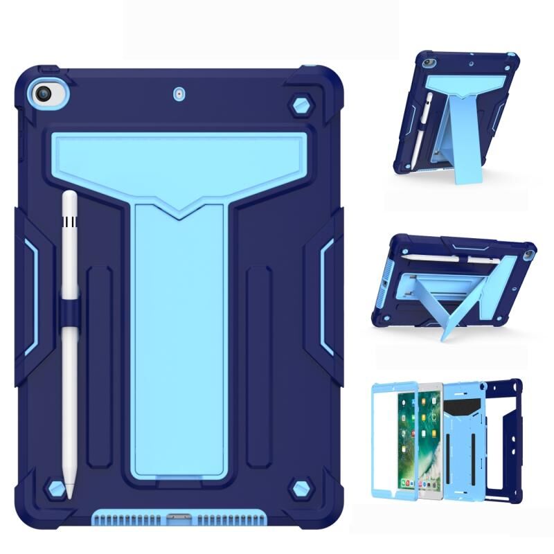 For iPad 10.2 / iPad Pro 10.5 T-shaped Bracket Contrast Color Shockproof PC + Silicone Flat Protective Case(Navy+Blue)
