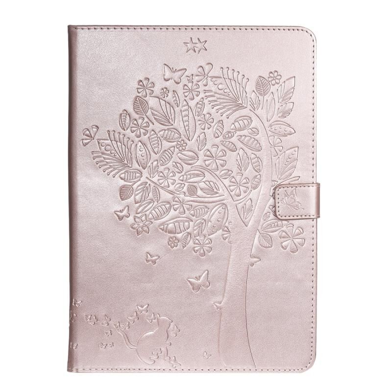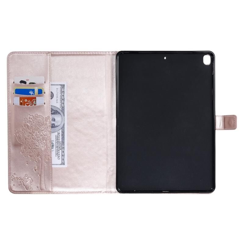 Θήκη δέρματος οριζόντιας αναδίπλωσης με σχέδιο γάτας και δέντρου με εκτύπωση για iPad 10.2 / Pro 10.5 / Air 2019 με βάση & υποδοχές καρτών & πορτοφόλι (Πράσινο)