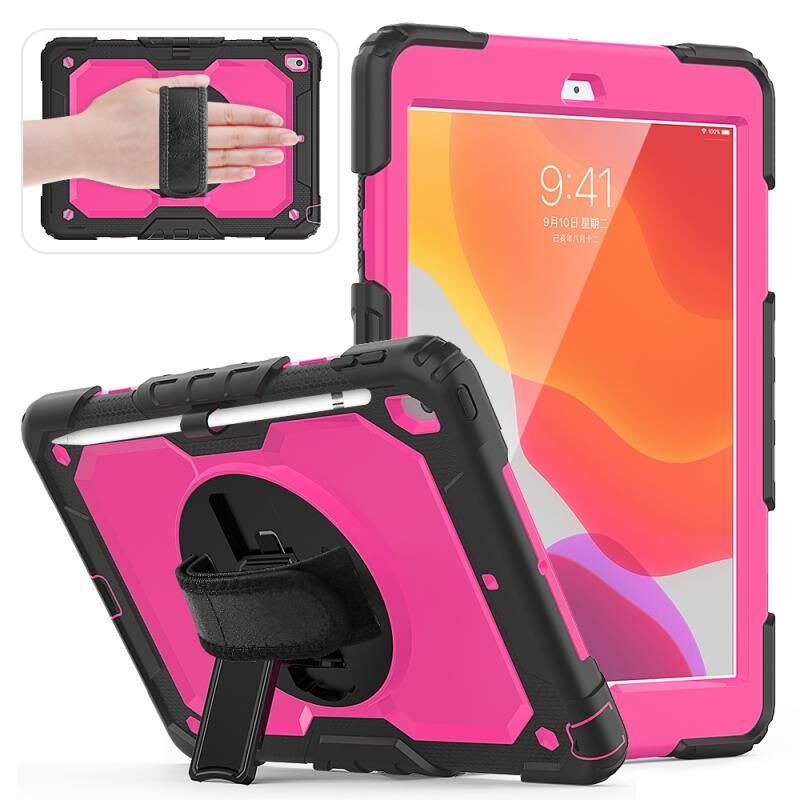 Θήκη προστασίας για iPad 10.2, ανθεκτική σε κρούσεις, πολύχρωμη από σιλικόνη και PC με βάση στήριξης, λουρί ώμου, λουρί χειρός και θήκη για στυλό (Πορτοκαλί)