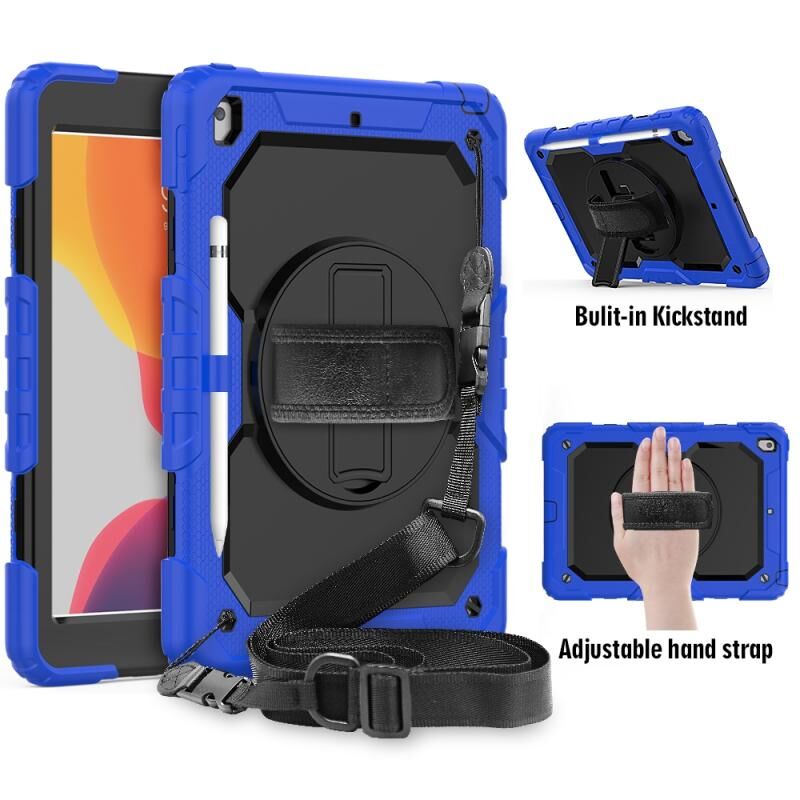 Θήκη προστασίας για iPad 10.2, ανθεκτική σε κρούσεις, πολύχρωμη από σιλικόνη και PC με βάση στήριξης, λουρί ώμου, λουρί χειρός και θήκη για στυλό (Πορτοκαλί)