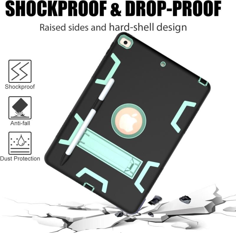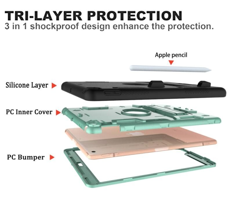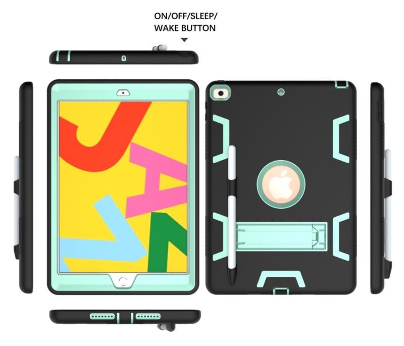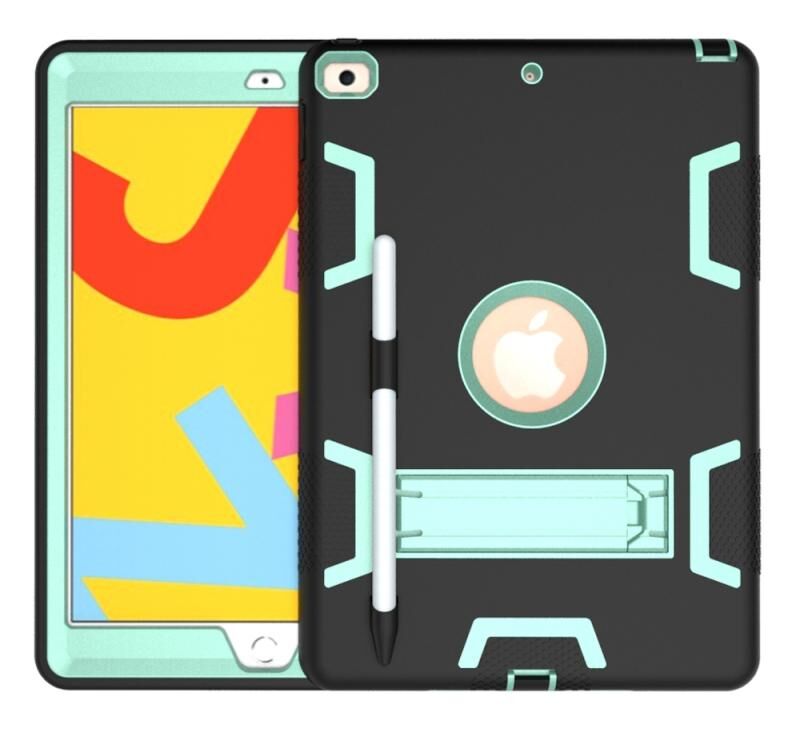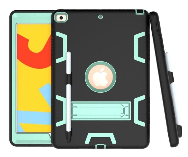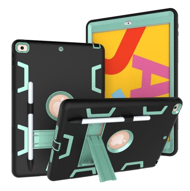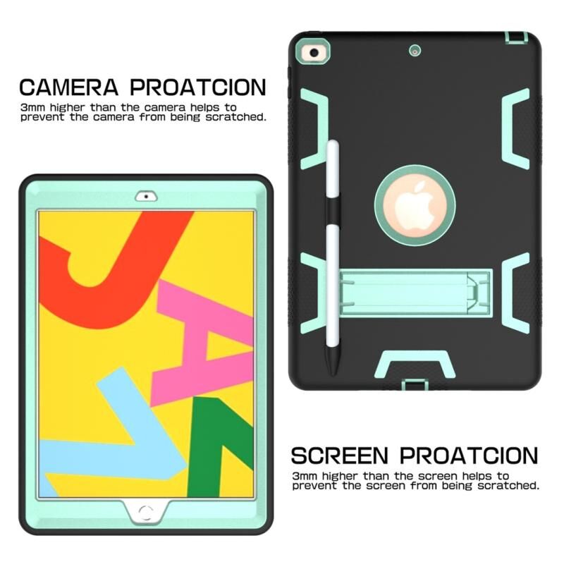 Θήκη προστασίας για iPad 10.2 ανθεκτική σε κρούσεις, από PC + σιλικόνη, με βάση στήριξης & υποδοχή για στυλό (Μέντα Πράσινο + Ροζ Κόκκινο)