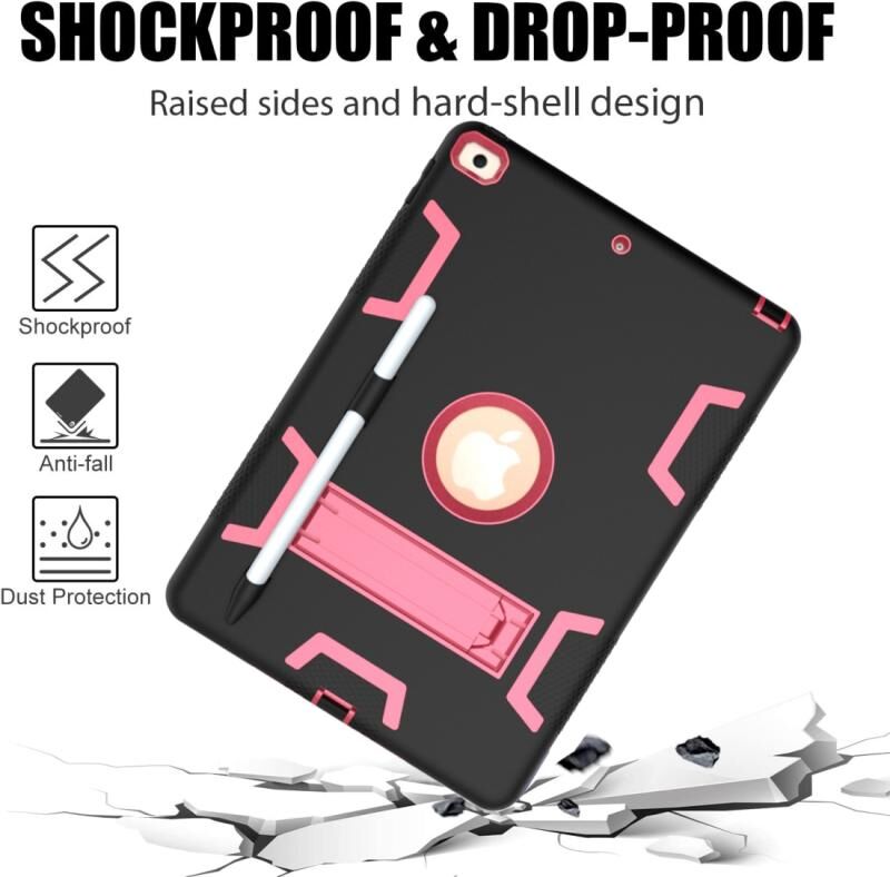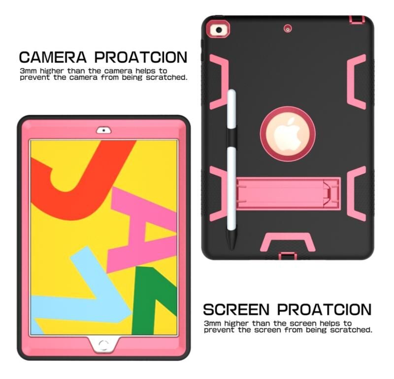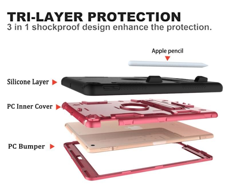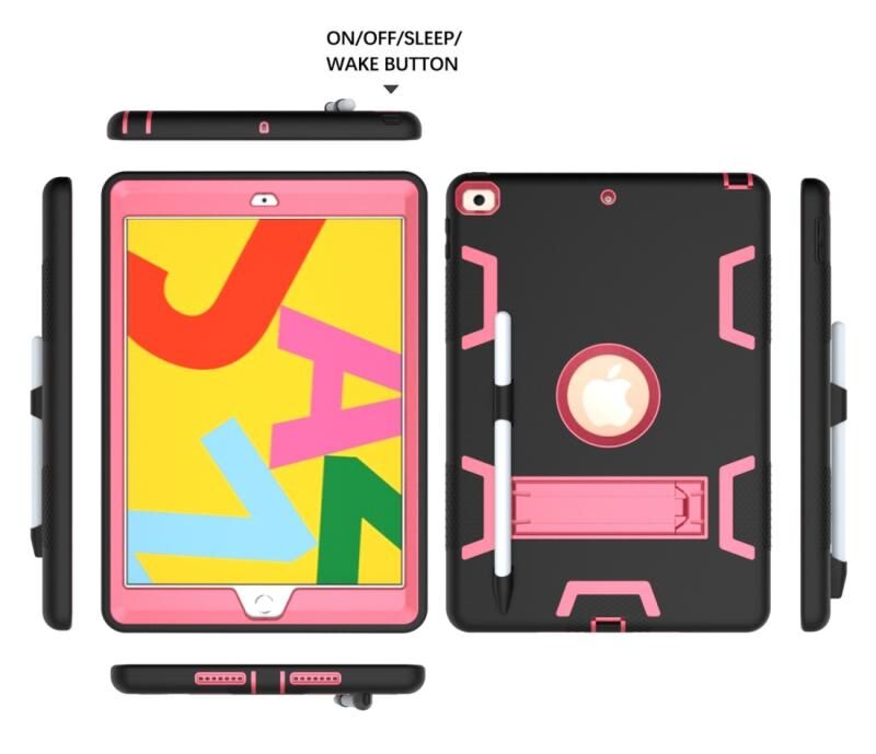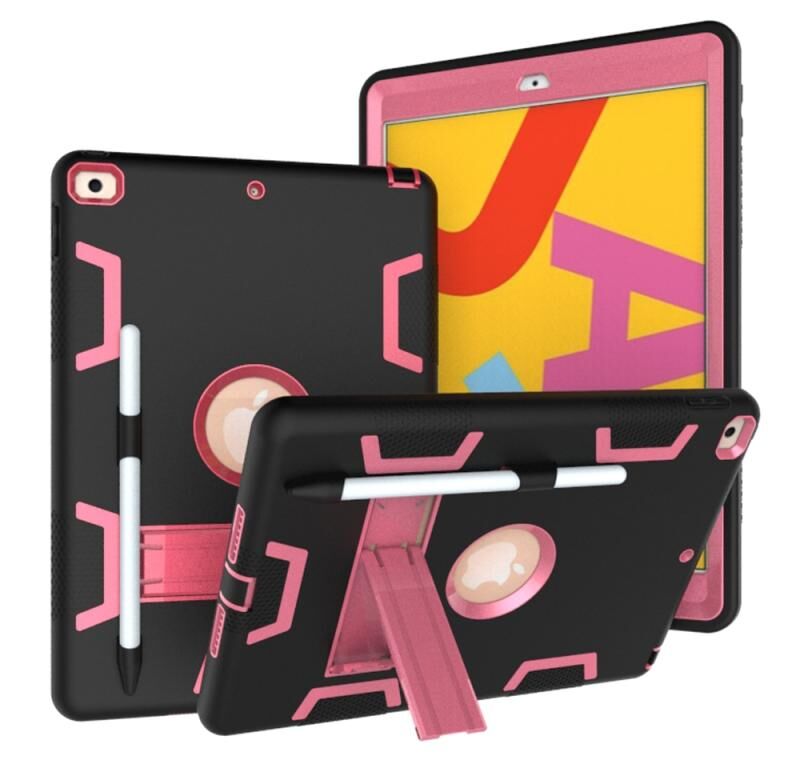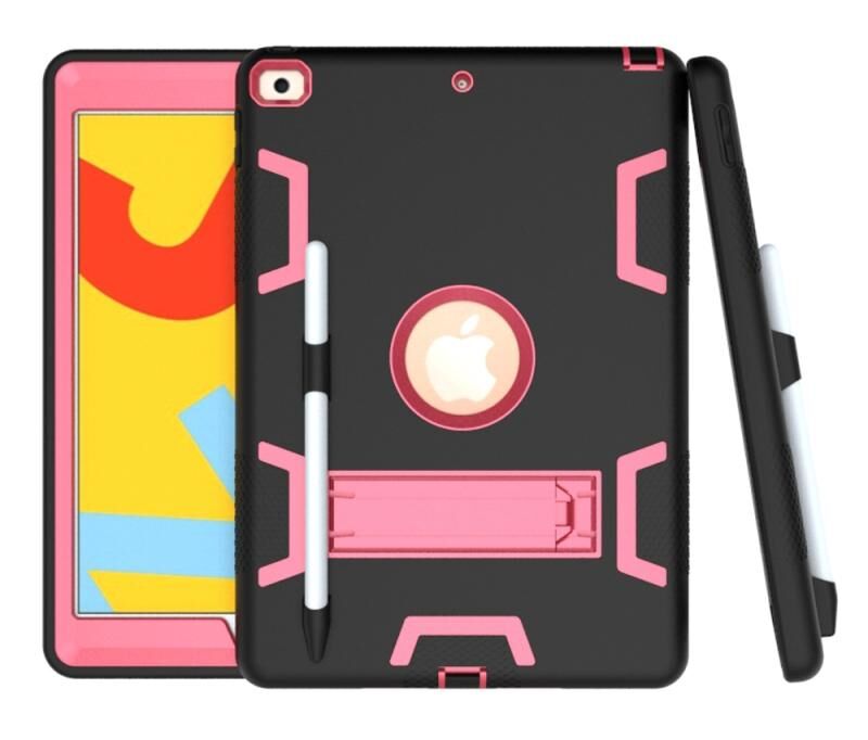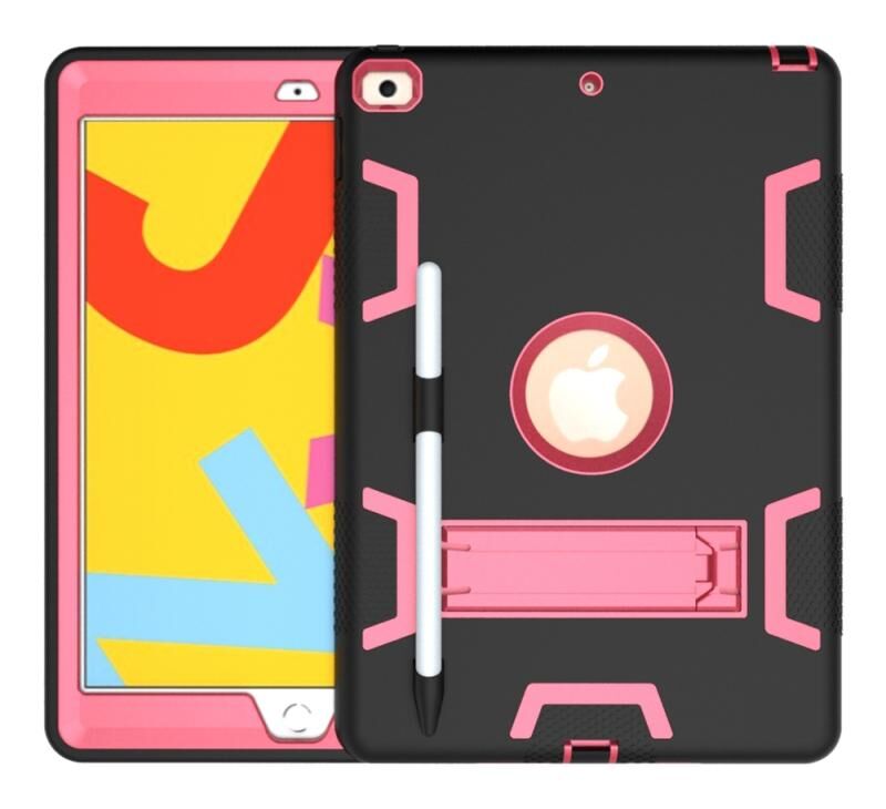 Θήκη προστασίας για iPad 10.2 ανθεκτική σε κρούσεις, από PC + σιλικόνη, με βάση στήριξης & υποδοχή για στυλό (Μέντα Πράσινο + Ροζ Κόκκινο)