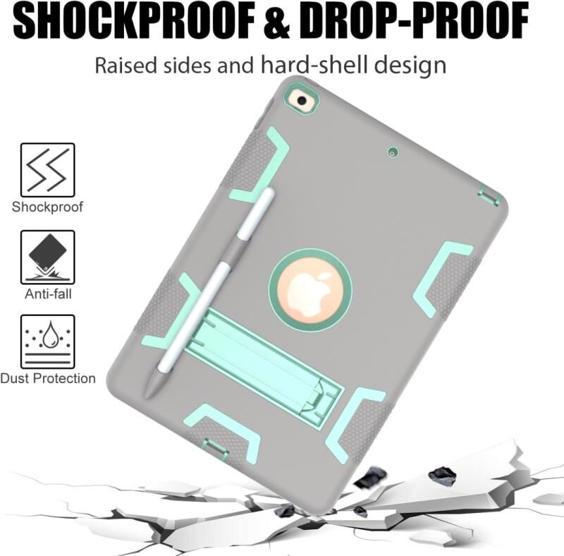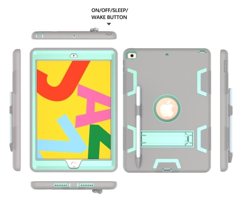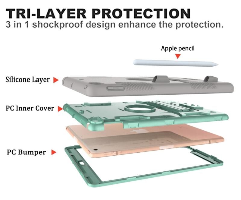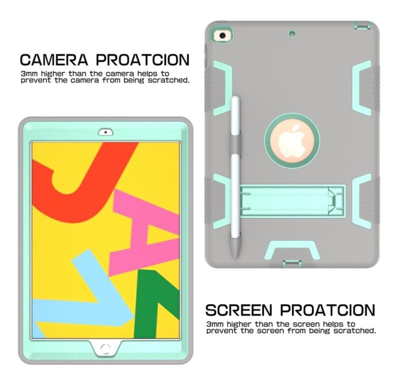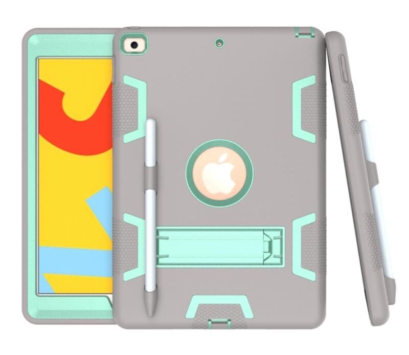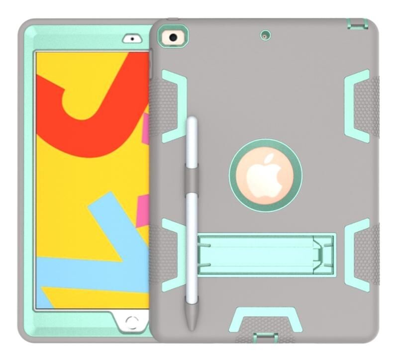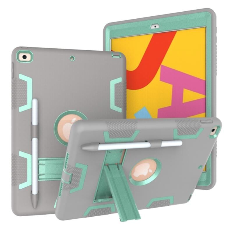 Θήκη προστασίας για iPad 10.2 ανθεκτική σε κρούσεις, από PC + σιλικόνη, με βάση στήριξης & υποδοχή για στυλό (Μέντα Πράσινο + Ροζ Κόκκινο)