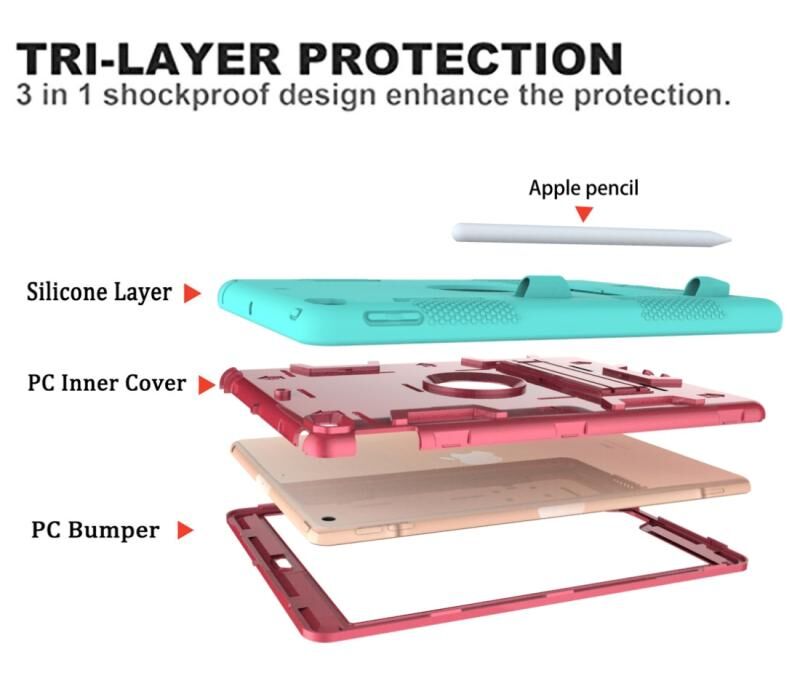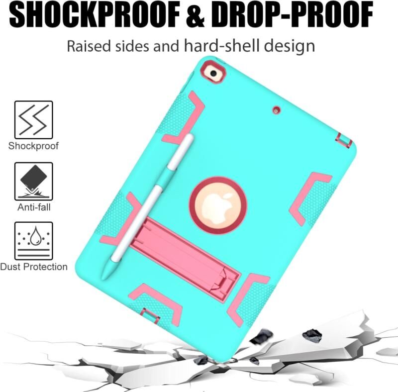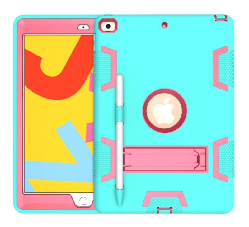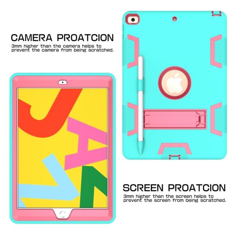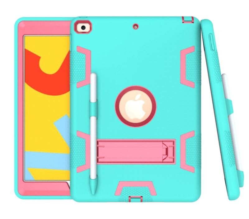 Θήκη προστασίας για iPad 10.2 ανθεκτική σε κρούσεις, από PC + σιλικόνη, με βάση στήριξης & υποδοχή για στυλό (Μέντα Πράσινο + Ροζ Κόκκινο)