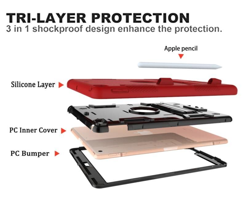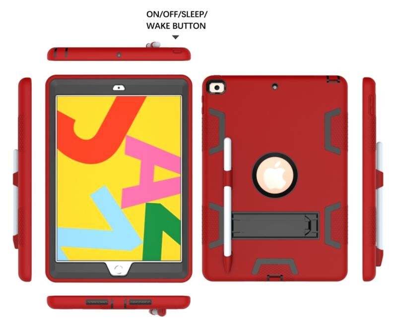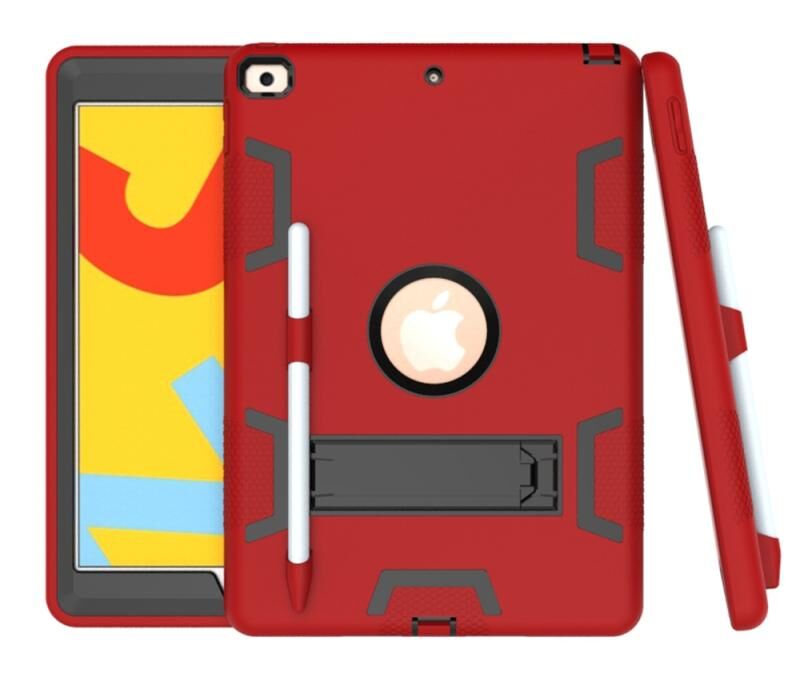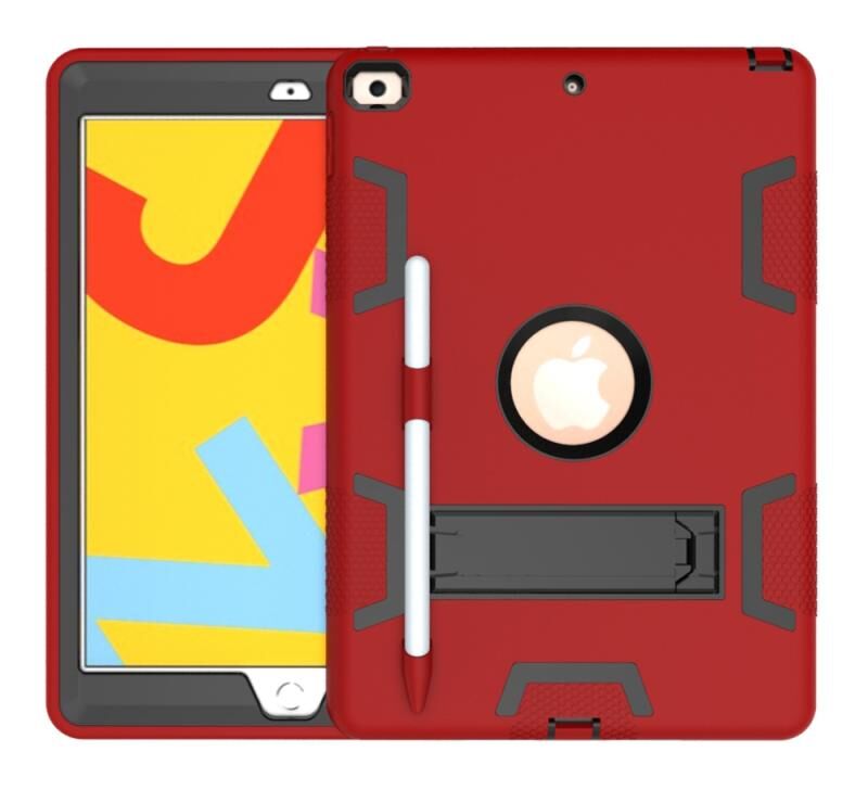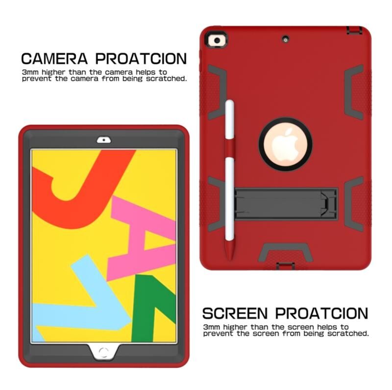 Θήκη προστασίας για iPad 10.2 ανθεκτική σε κρούσεις, από PC + σιλικόνη, με βάση στήριξης & υποδοχή για στυλό (Μέντα Πράσινο + Ροζ Κόκκινο)