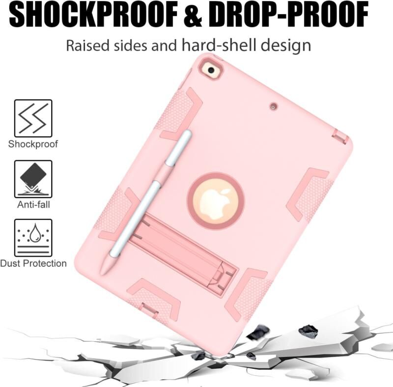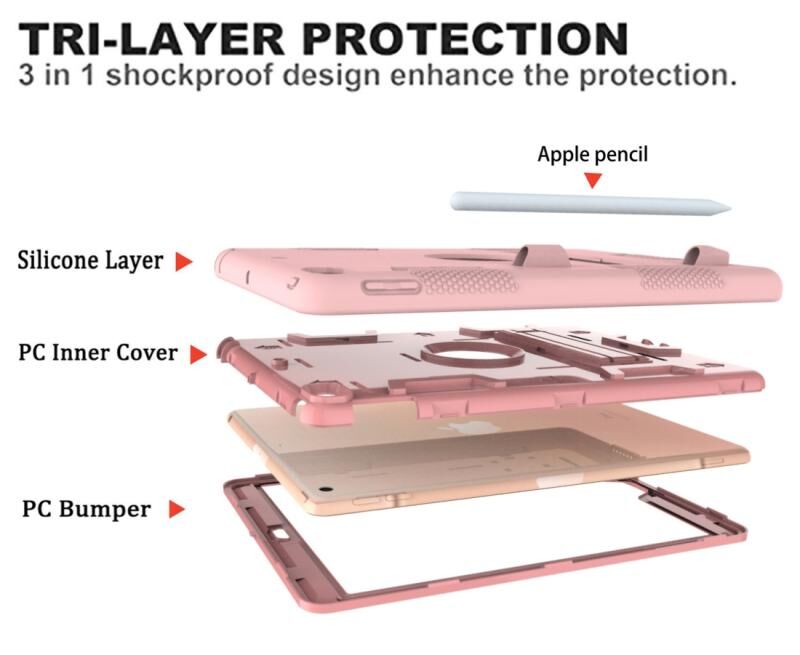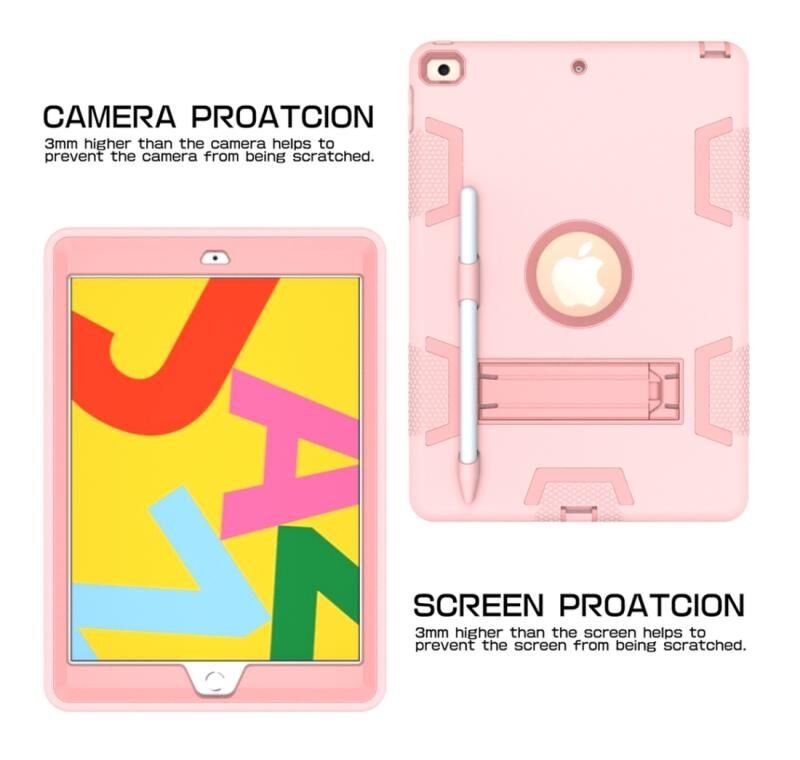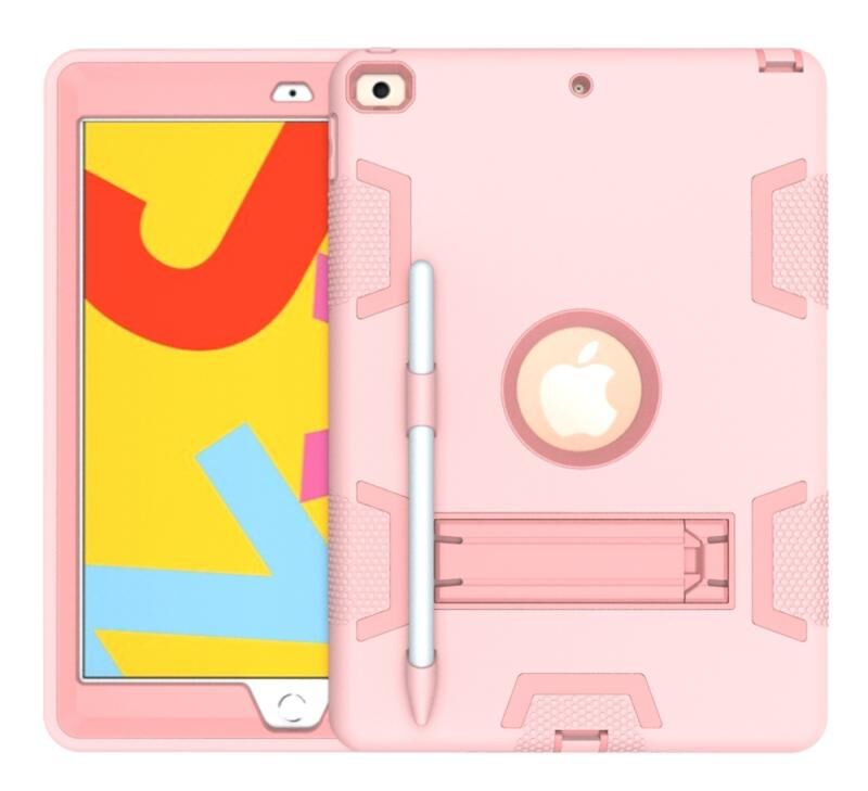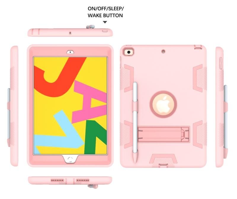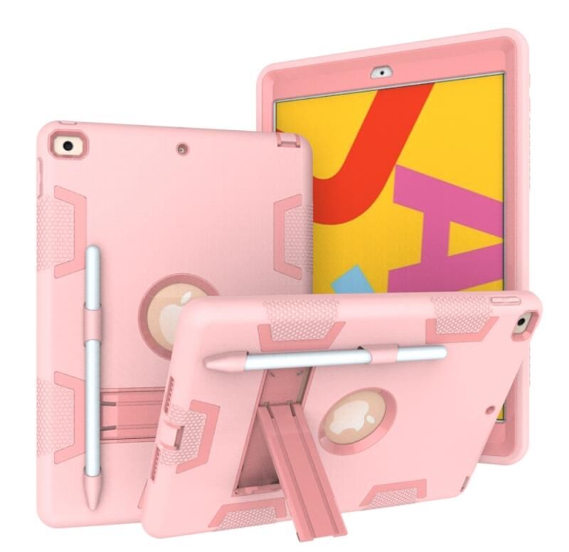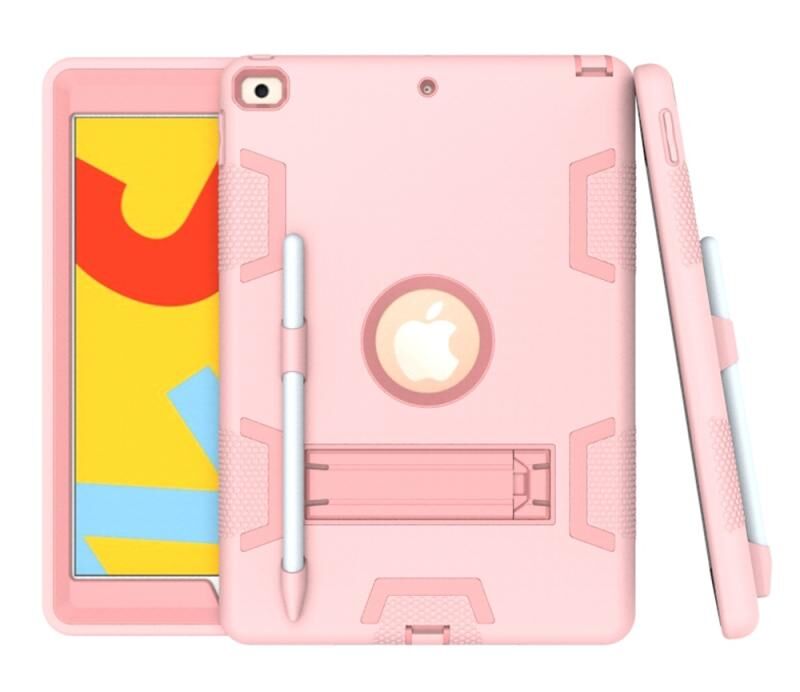 Θήκη προστασίας για iPad 10.2 ανθεκτική σε κρούσεις, από PC + σιλικόνη, με βάση στήριξης & υποδοχή για στυλό (Μέντα Πράσινο + Ροζ Κόκκινο)