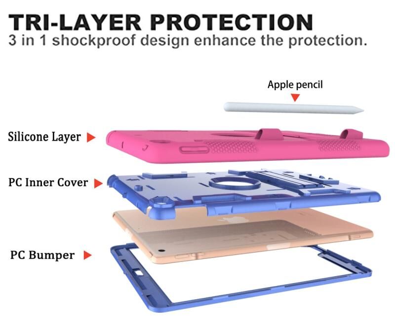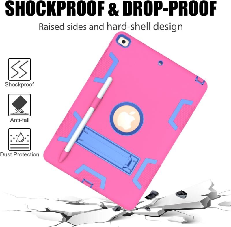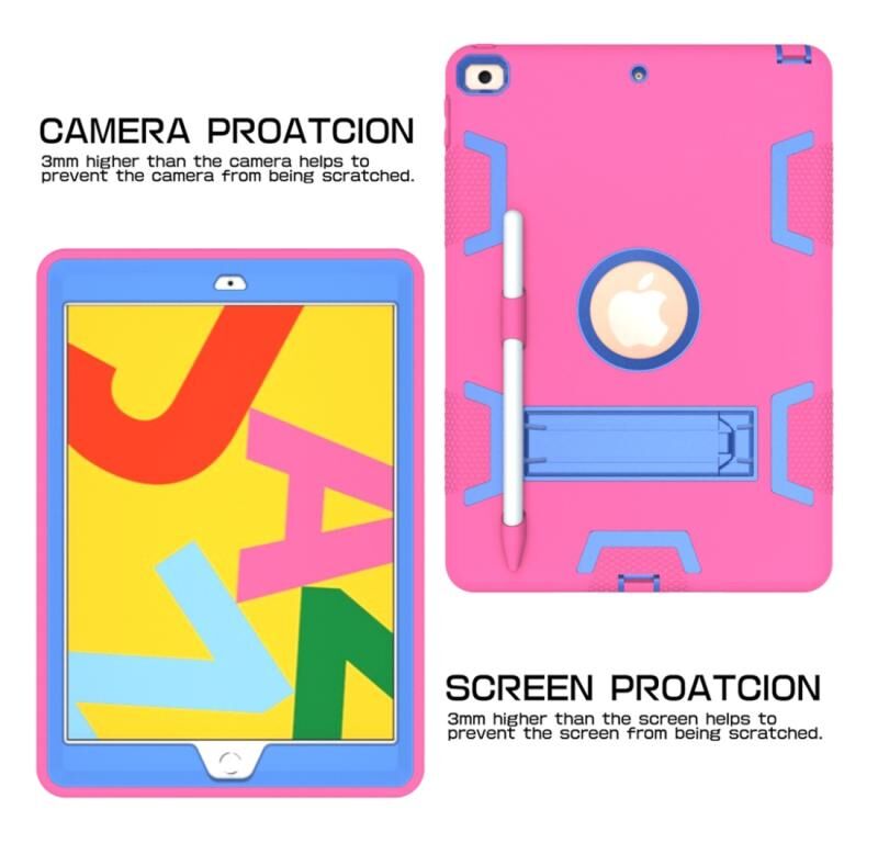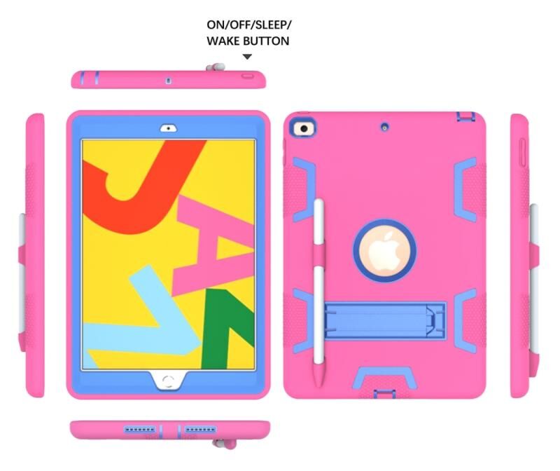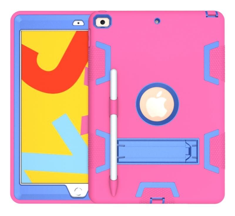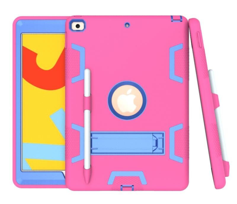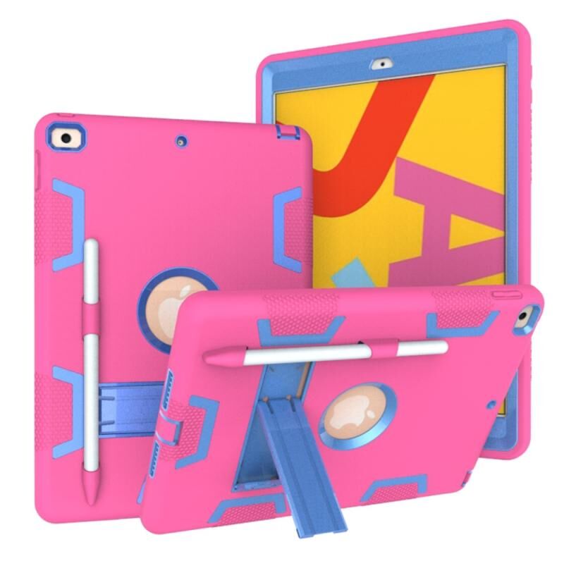 Θήκη προστασίας για iPad 10.2 ανθεκτική σε κρούσεις, από PC + σιλικόνη, με βάση στήριξης & υποδοχή για στυλό (Μέντα Πράσινο + Ροζ Κόκκινο)