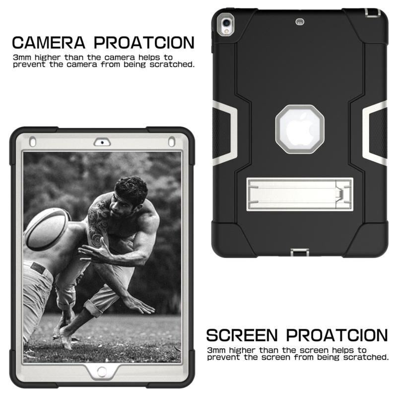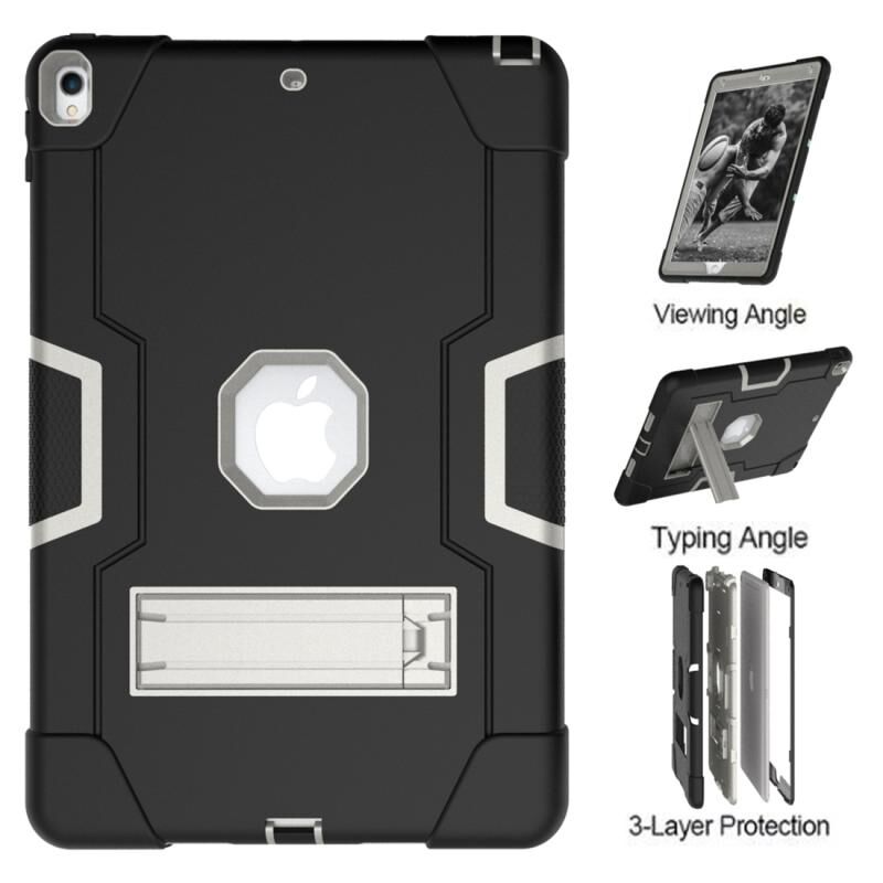 For iPad 10.5 Contrast Color Silicone + PC Combination Case with Holder(Black + Grey)