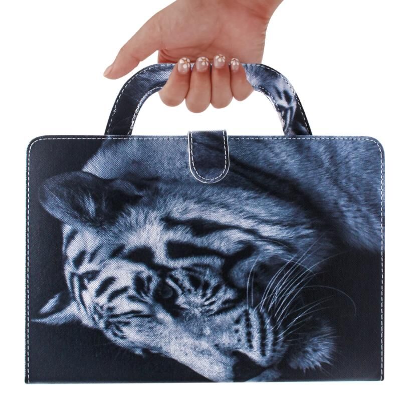 Θήκη tablet δερμάτινη οριζόντιας αναδίπλωσης 3D με έγχρωμο σχέδιο για iPad 11 (2020) με βάση στήριξης & θήκη καρτών & πορτοφόλι & λαβή (Λευκή Τίγρη)