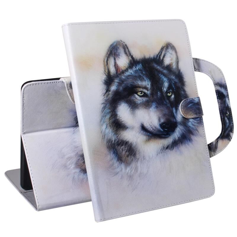 Θήκη tablet δερμάτινη οριζόντιας αναδίπλωσης 3D με έγχρωμο σχέδιο για iPad 11 (2020) με βάση στήριξης & θήκη καρτών & πορτοφόλι & λαβή (Λευκός Λύκος)