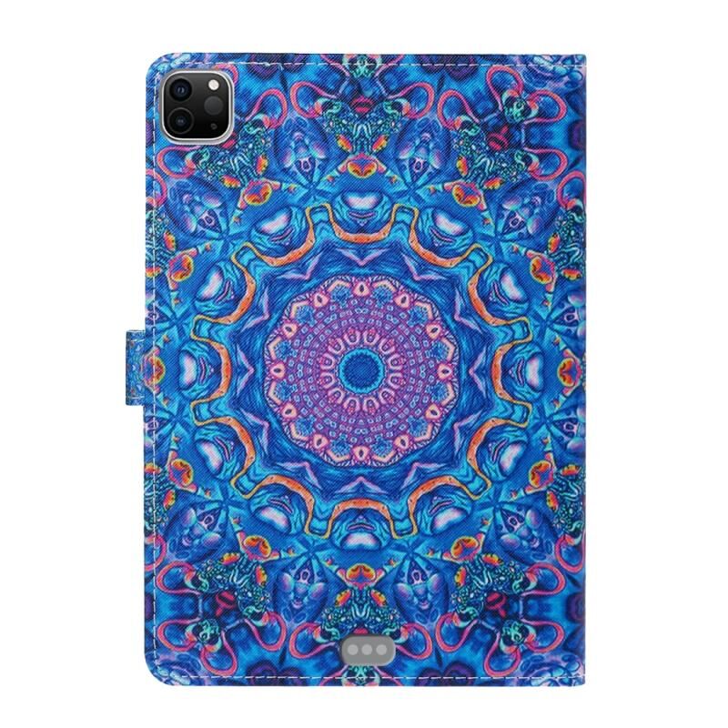 Θήκη tablet από δέρμα TPU με οριζόντιο άνοιγμα για iPad 11 Pro (2020) με ζωγραφισμένο σχέδιο λουλουδιών και τοτέμ, γραμμές και βάση στήριξης, θήκη για κάρτες και λειτουργία αυτόματης αφύπνισης/ύπνου (Μπλε)