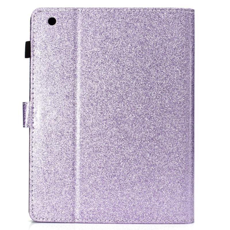 Θήκη δέρματος οριζόντιας αναδίπλωσης με λάμψη βερνικιού και σκόνη γκλίτερ για iPad 2 / 3 / 4 με βάση & θήκη για κάρτες (Ροζ)