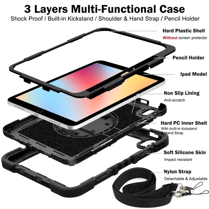For iPad 2025 / 2022 360 Degree Rotation Shockproof Silicone + PC Tablet Case(Black)