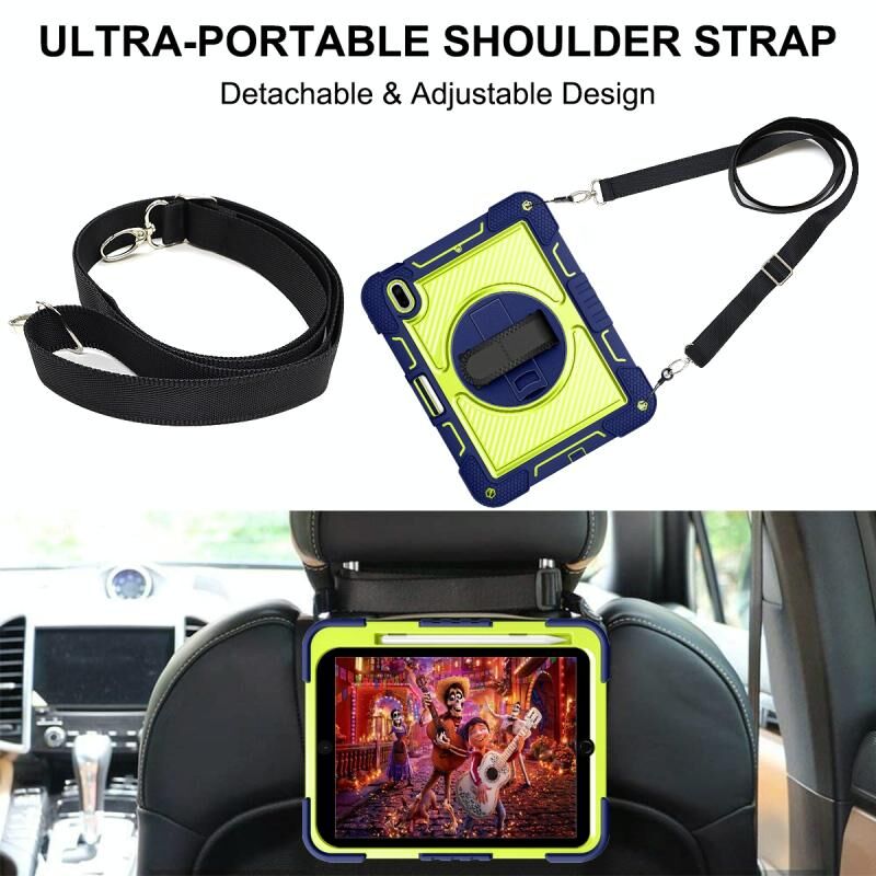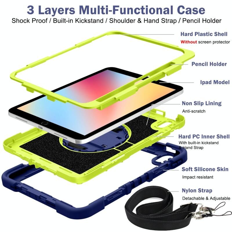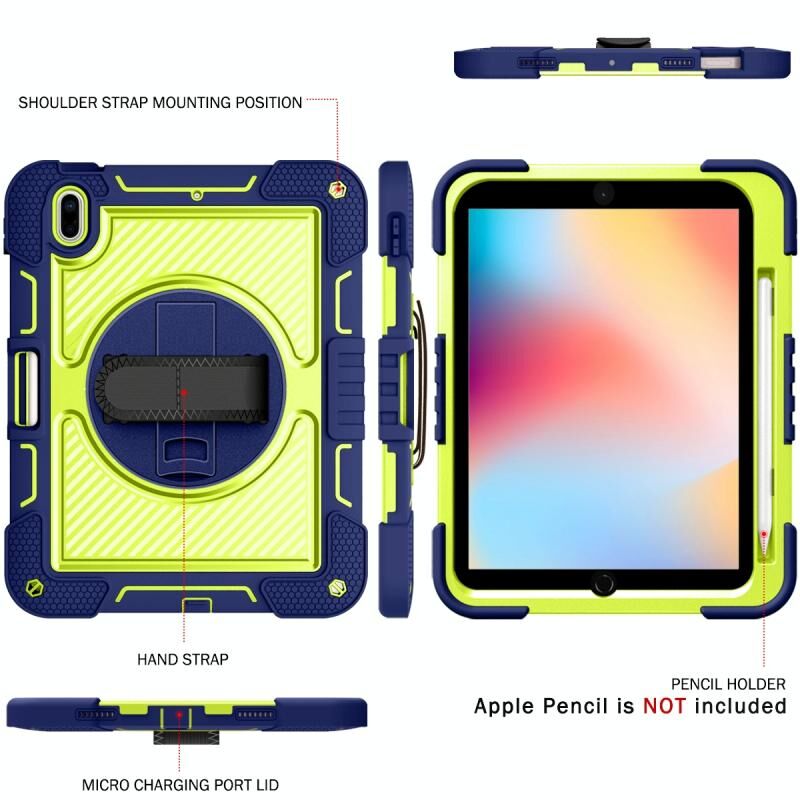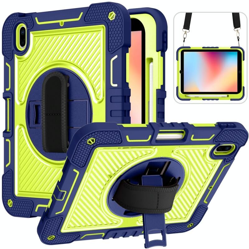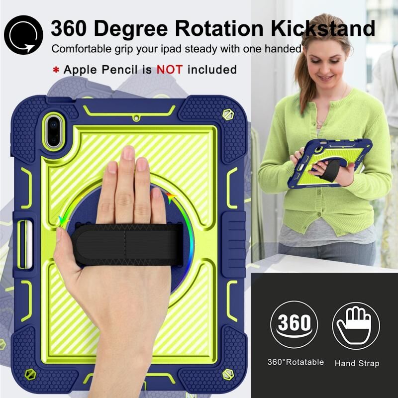 For iPad 2025 / 2022 360 Degree Rotation Shockproof Silicone + PC Tablet Case(Navy+Yellow Green)