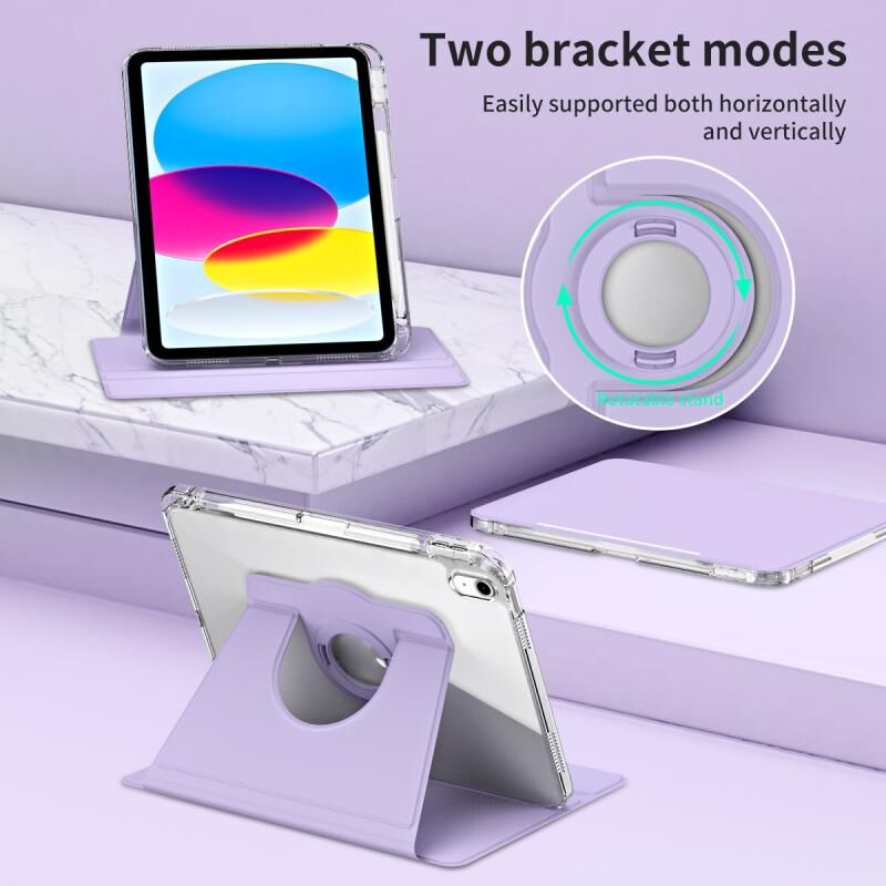 For iPad 2025 / 2022 360 Rotation Detachable Clear Acrylic Leather Tablet Case(Light Purple)