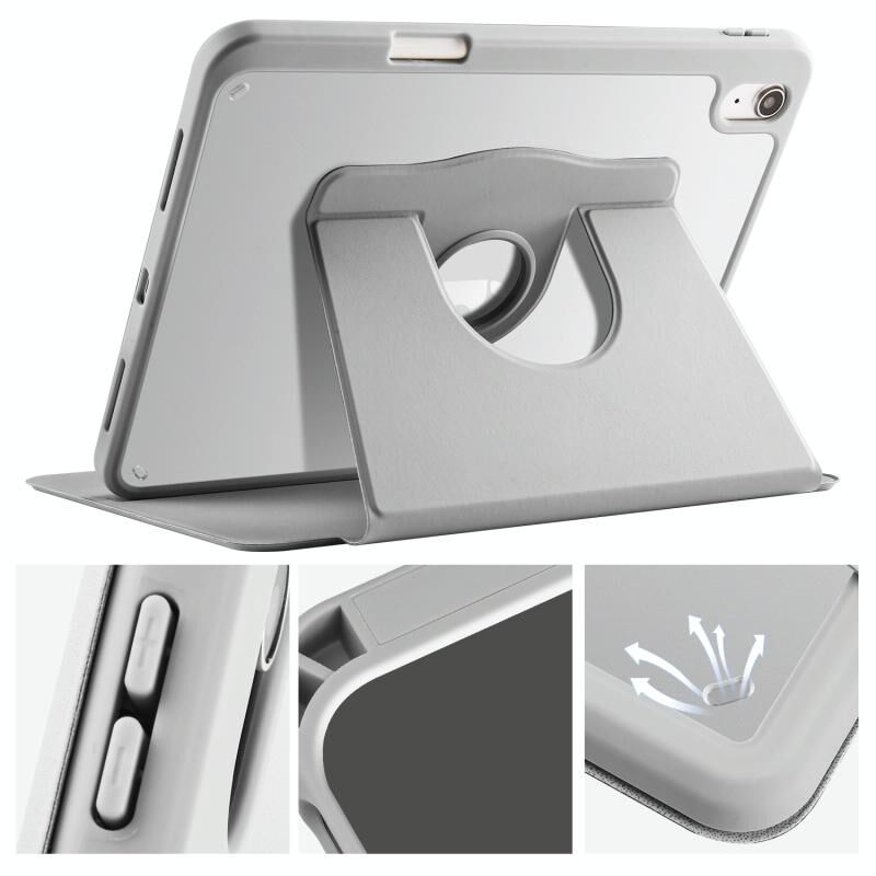For iPad 2025 / 2022 Acrylic 360 Degree Rotation Holder Tablet Leather Case(Fog Grey)