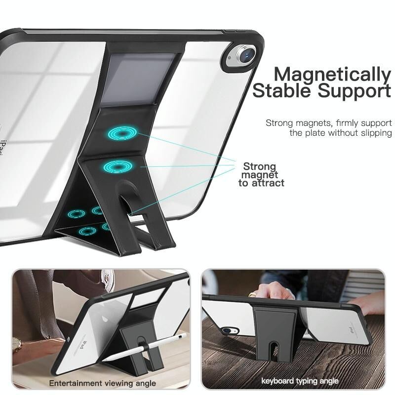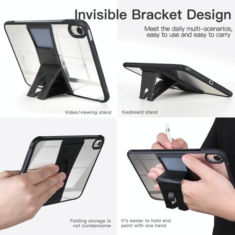 For iPad 2025 / 2022 Acrylic TPU Transparent Tablet Protective Case with Holder(Black)