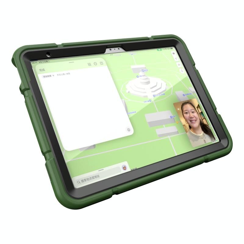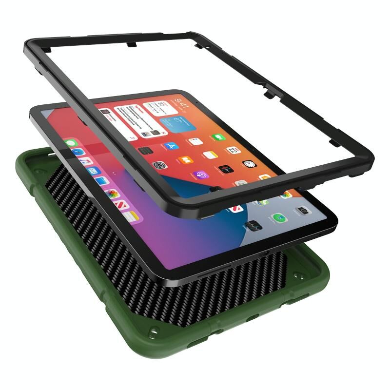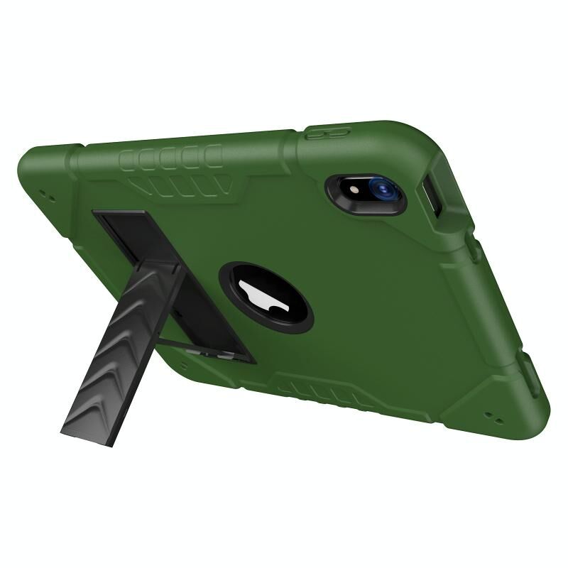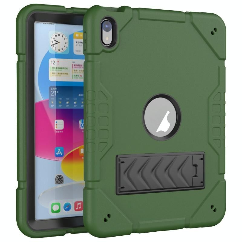 For iPad 2025 / 2022 Armor Holder Silicone Hybrid PC Tablet Case(Army Green Black)