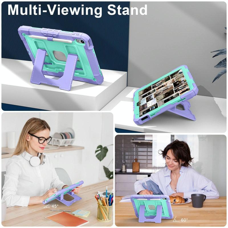 For iPad 2025 / 2022 Big Holder Silicone Hydric PC Tablet Case with Shoulder Strap(Purple Mint)
