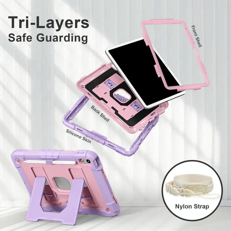 For iPad 2025 / 2022 Big Holder Silicone Hydric PC Tablet Case with Shoulder Strap(Purple Rose Gold)