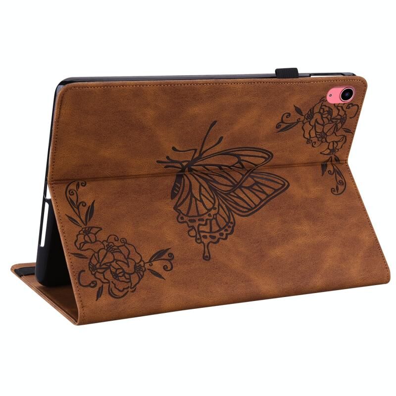 For iPad 2025 / 2022 Butterfly Flower Embossed Leather Tablet Case(Brown)