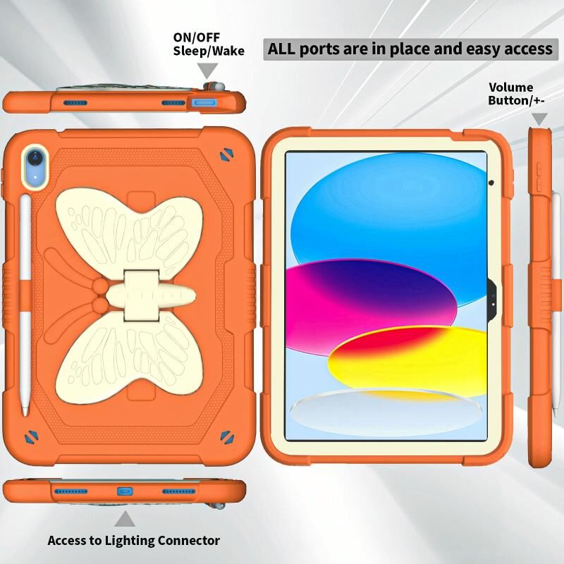 For iPad 2025 / 2022 Butterfly Kickstand Heavy Duty Hard Rugged Tablet Case(Gream Gold Orange)
