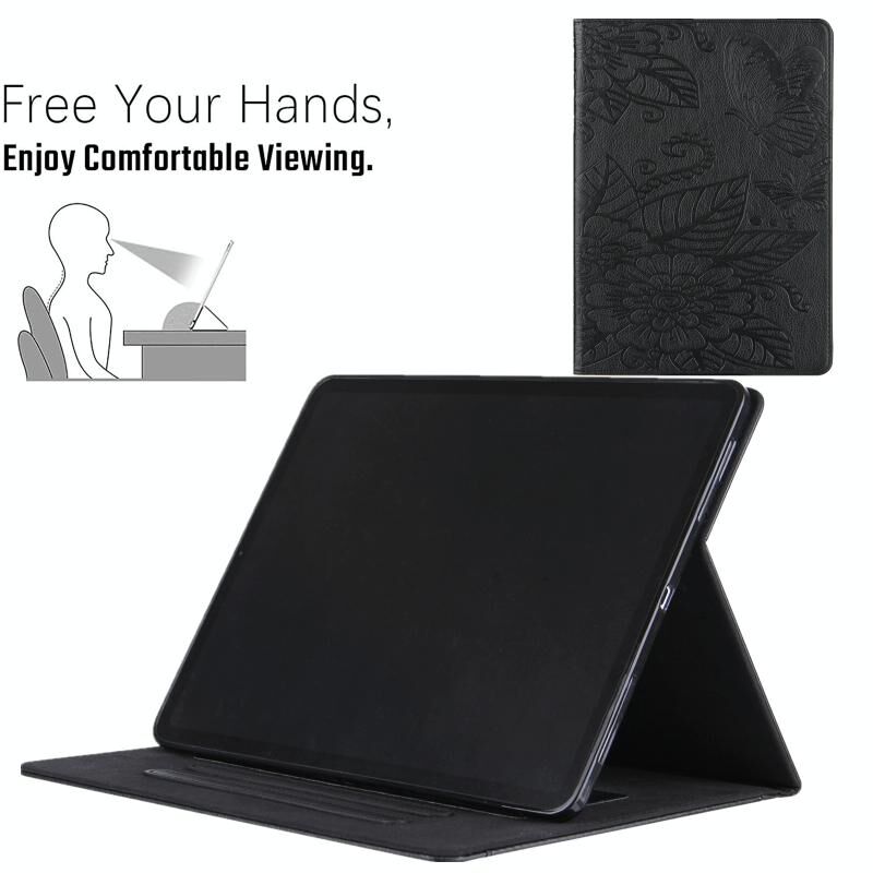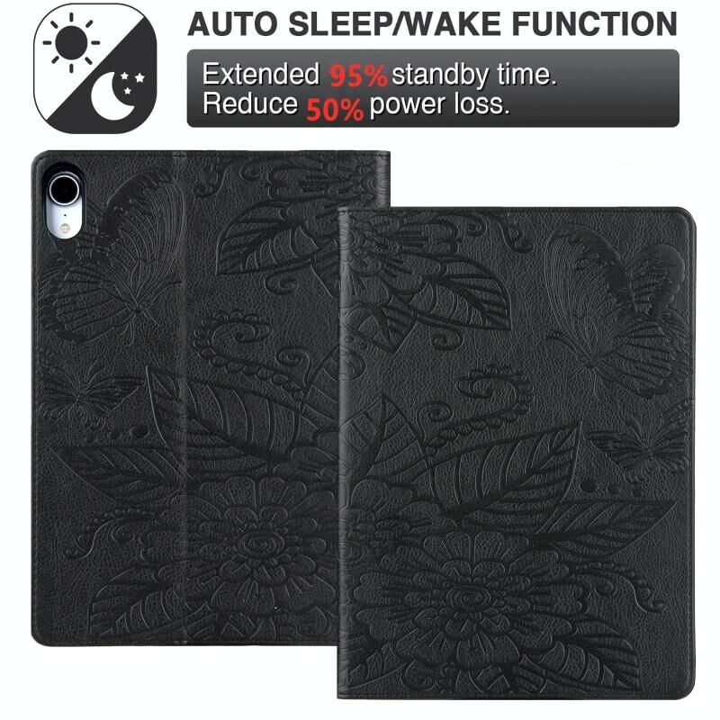 For iPad 2025 / 2022 Butterfly Love Flower Embossed Leather Smart Tablet Case(Black)