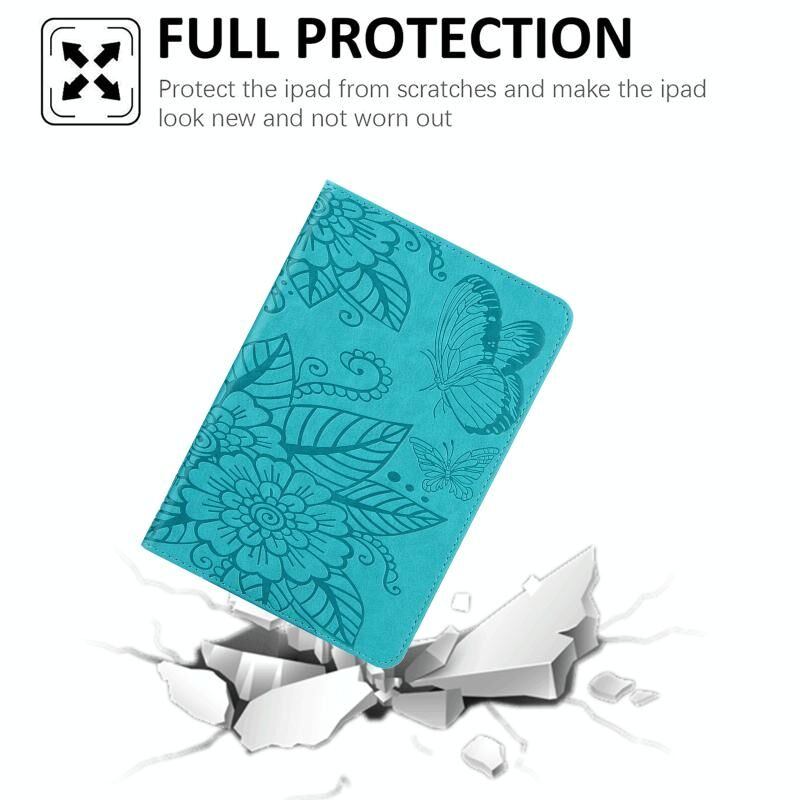 For iPad 2025 / 2022 Butterfly Love Flower Embossed Leather Smart Tablet Case(Blue)
