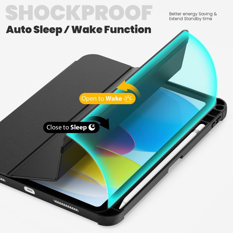 6. Auto Sleep / Wake: Better energy conservation & extending standby time when cover stays close to the screen and Easy access to all buttons and ports without disassembling the tablet from case.