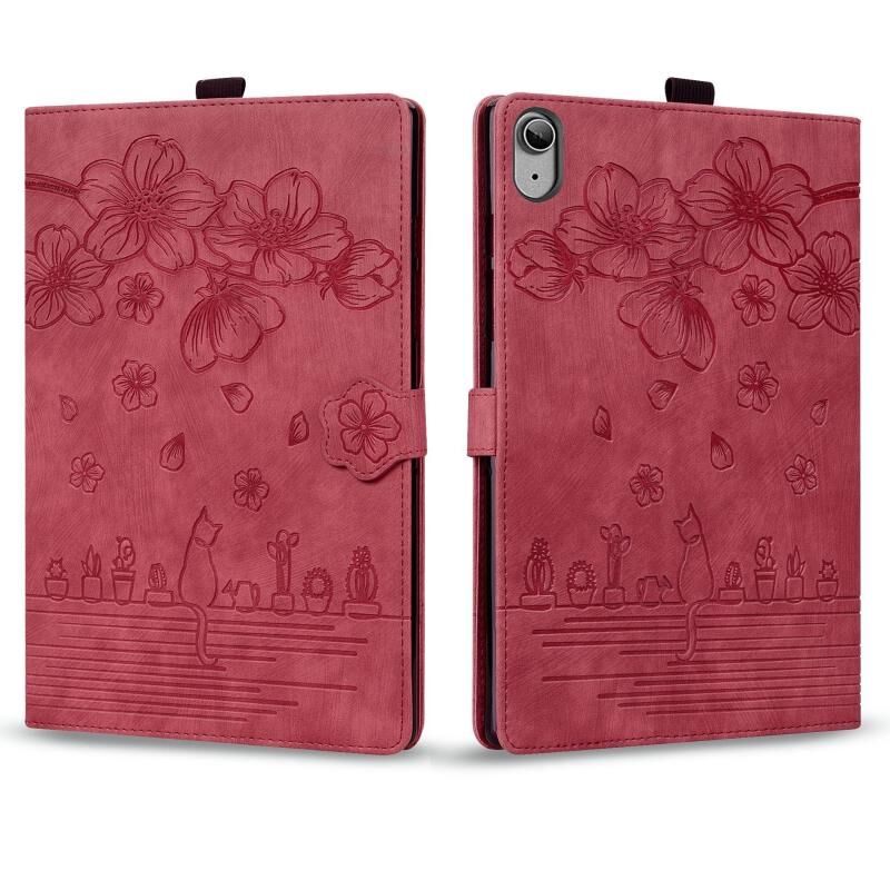 For iPad 2025 / 2022 Cartoon Sakura Cat Embossed Smart Leather Tablet Case(Red)