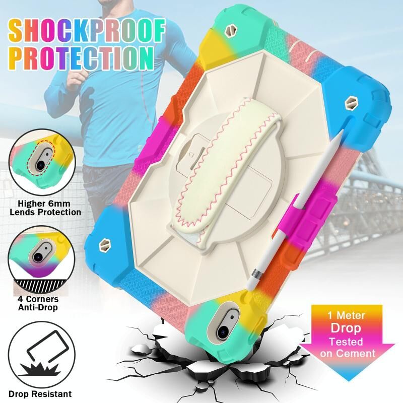 For iPad 2025 / 2022 Contrast Color Robot Shockproof Silicon + PC Tablet Protective Case with Crossbody Rope(Colorful Mint)