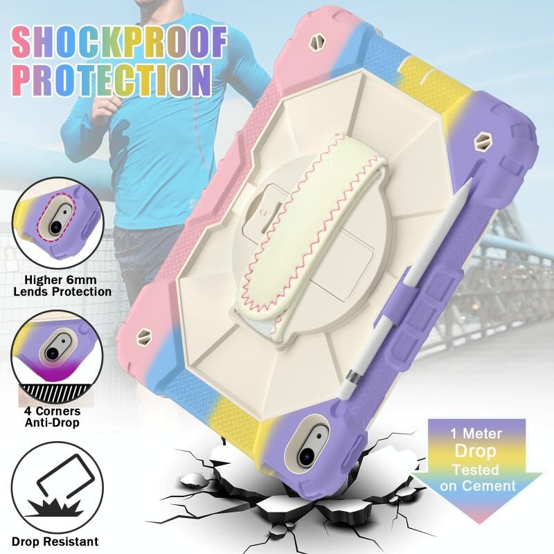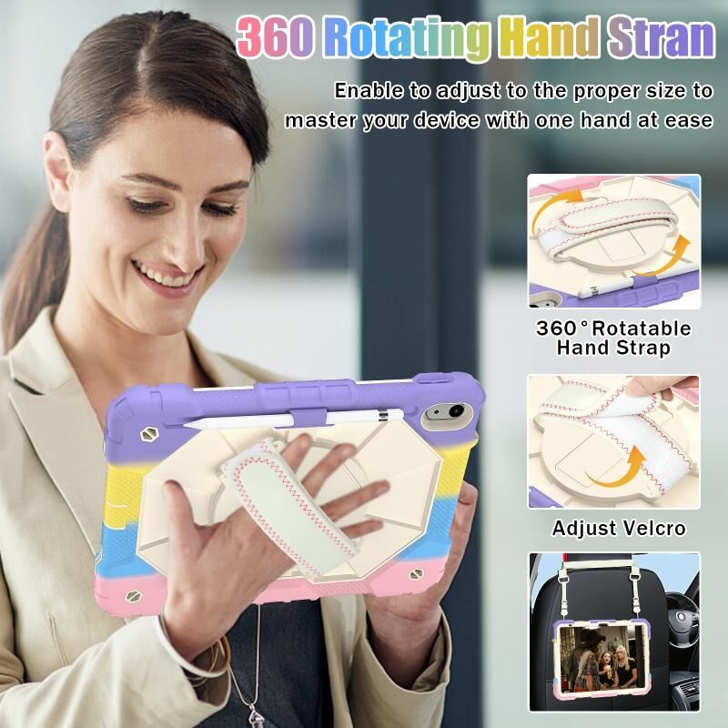 For iPad 2025 / 2022 Contrast Color Robot Shockproof Silicon + PC Tablet Protective Case with Crossbody Rope(Colorful Pink)