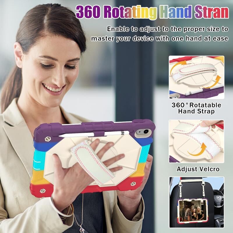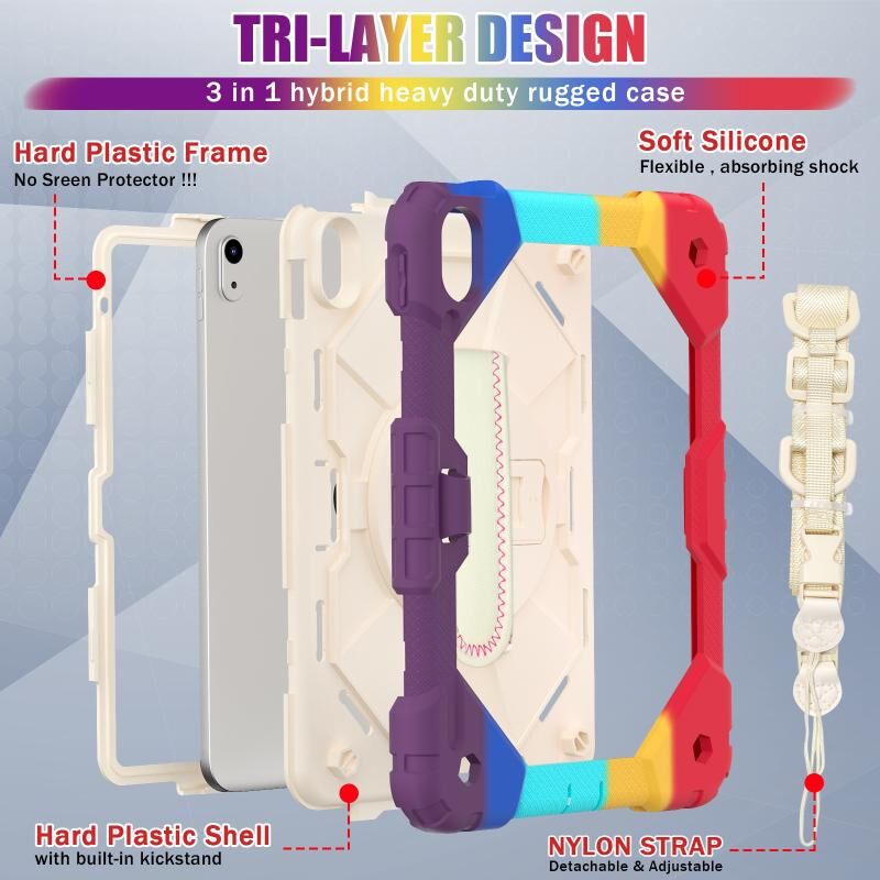 For iPad 2025 / 2022 Contrast Color Robot Shockproof Silicon + PC Tablet Protective Case with Crossbody Rope(Colorful Red)