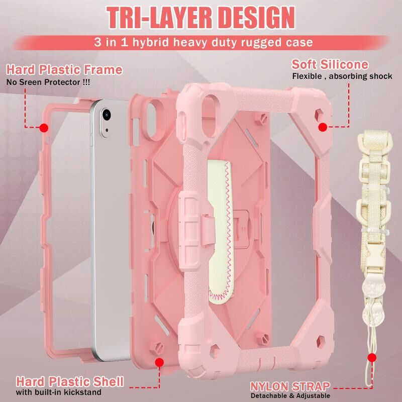 For iPad 2025 / 2022 Contrast Color Robot Shockproof Silicon + PC Tablet Protective Case with Crossbody Rope(Rose Gold)