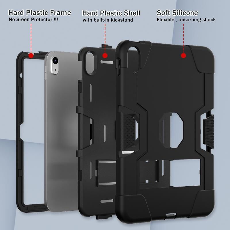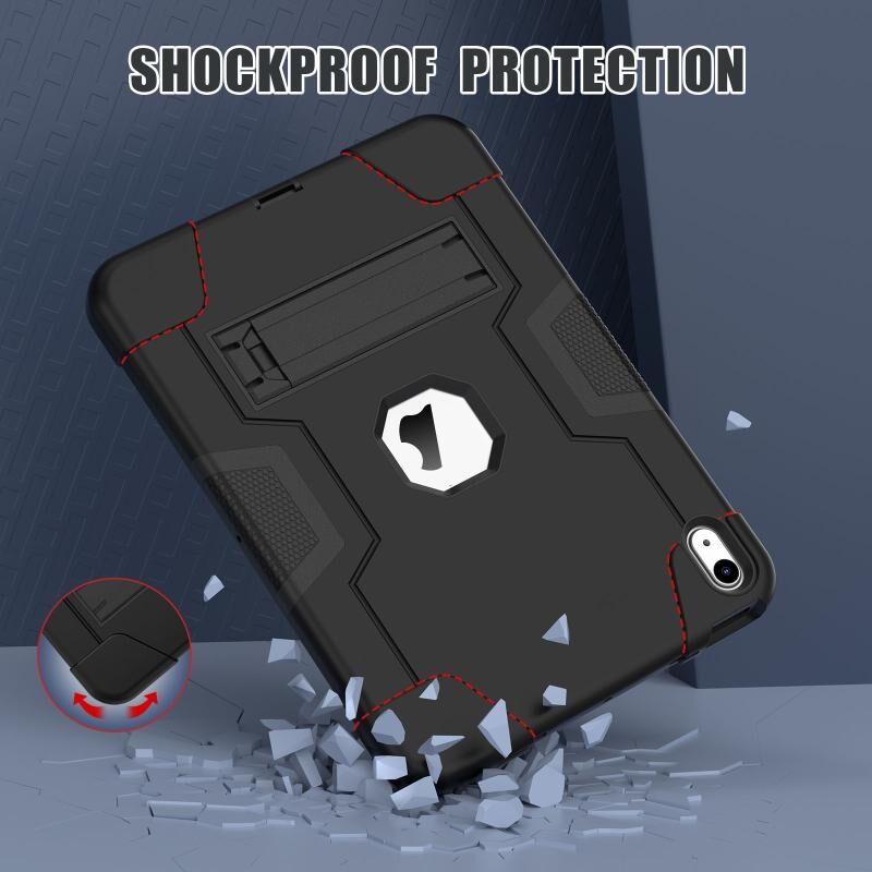 For iPad 2025 / 2022 Contrast Color Silicone + PC Tablet Case with Holder(Black)